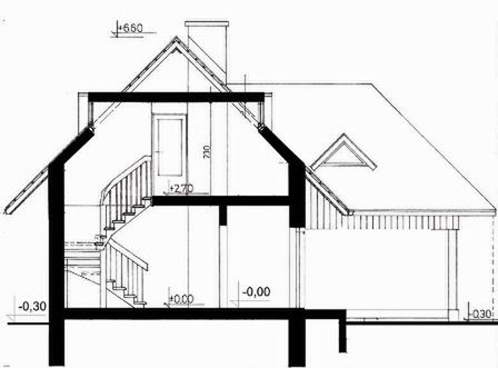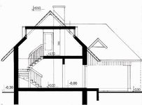 Ściany zewnętrzne: gr. 40 cm; pustak ceramiczny + styropian. Strop: drewniany. Schody: drewniane. Dach: dwuspadowy o nachyleniu 45 stopni, krycie dachówką. Poziom kalenicy: 6,90 m od terenu. Dodatkowe informacje: dom ogrzewany energią elektryczną.