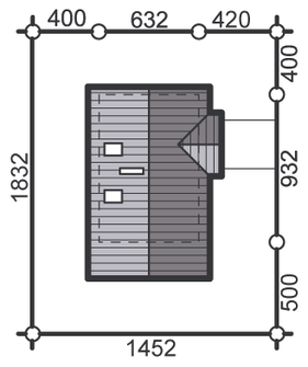 Graficzne opracowanie rzutów poglądowych widocznych na karcie projektu zostało wykonane przez Extradom.pl. Prezentowane przez Extradom.pl wizualizacje wykonane zostały przez autora projektu i należy poczytywać je jedynie za przykład i propozycję wykończenia, wizję architektoniczną autora projektu. Ostateczne wykończenie budynku może nastąpić na wiele sposobów. Szczegółowe rozwiązania zastosowane w oferowanej dokumentacji - w tym również ilość, lokalizacje i wygląd okien, drzwi, kominów - mogą w niewielkim stopniu różnić się od prezentowanej wizualizacji budynku.