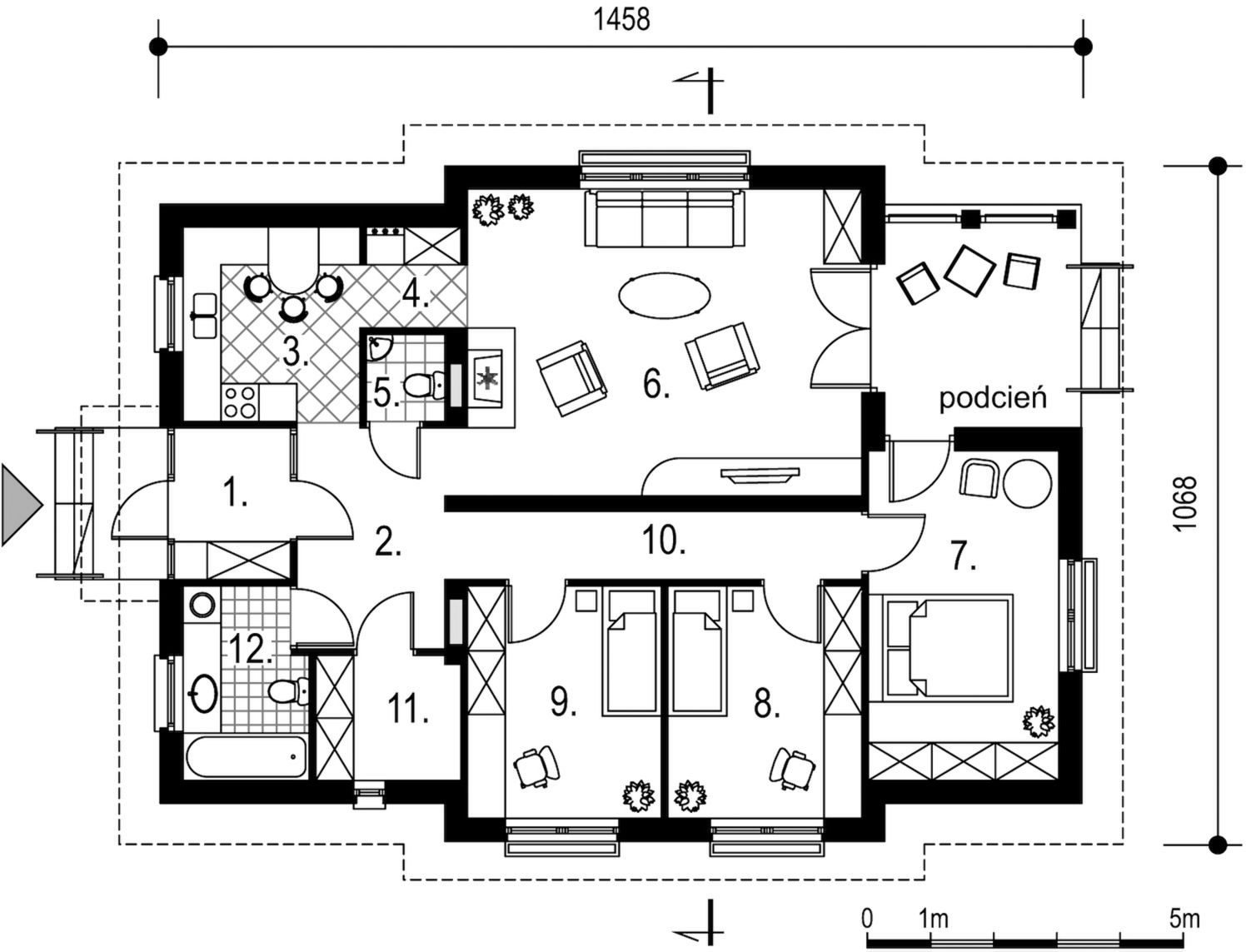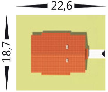 Graficzne opracowanie rzutów poglądowych widocznych na karcie projektu zostało wykonane przez Extradom.pl. Prezentowane przez Extradom.pl wizualizacje wykonane zostały przez autora projektu i należy poczytywać je jedynie za przykład i propozycję wykończenia, wizję architektoniczną autora projektu. Ostateczne wykończenie budynku może nastąpić na wiele sposobów. Szczegółowe rozwiązania zastosowane w oferowanej dokumentacji - w tym również ilość, lokalizacje i wygląd okien, drzwi, kominów - mogą w niewielkim stopniu różnić się od prezentowanej wizualizacji budynku.