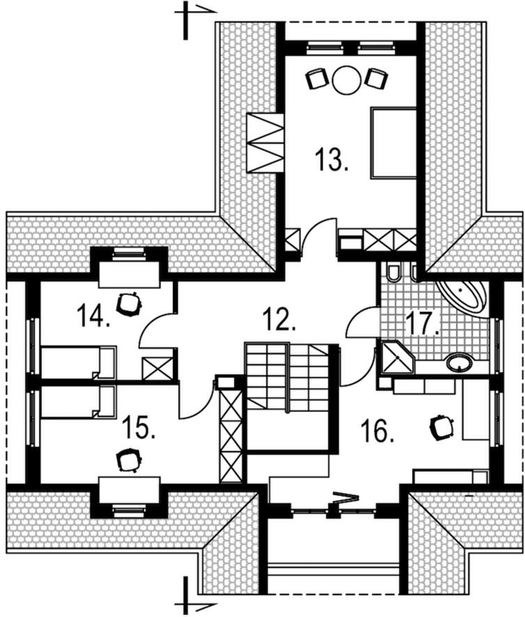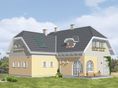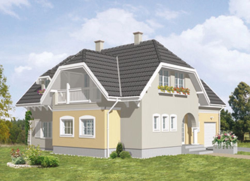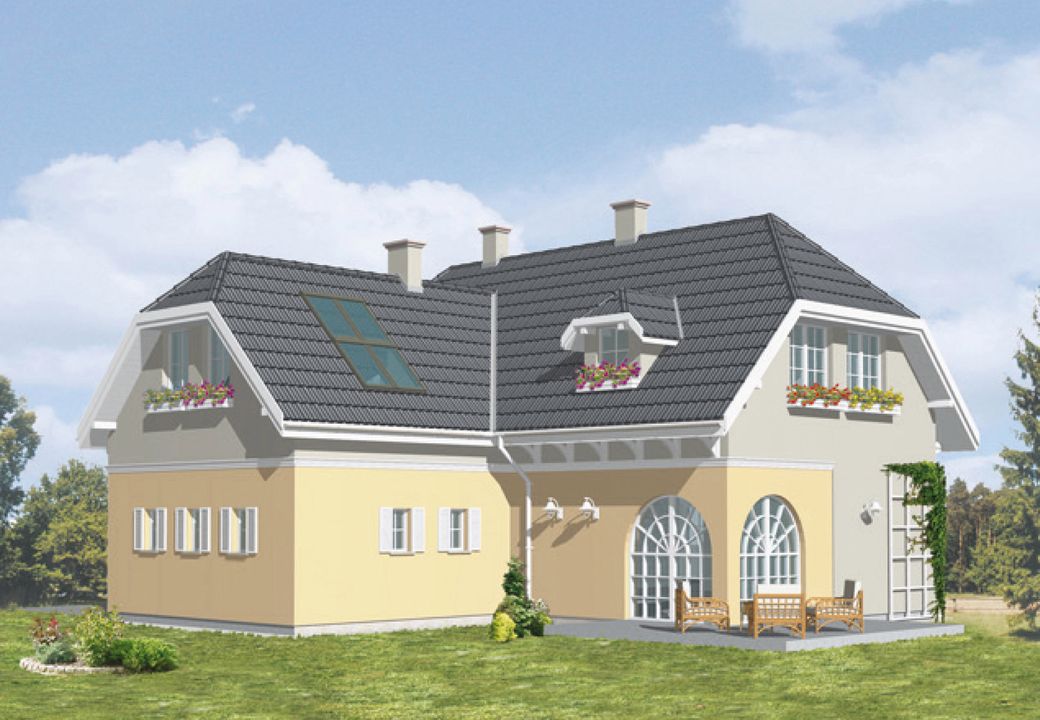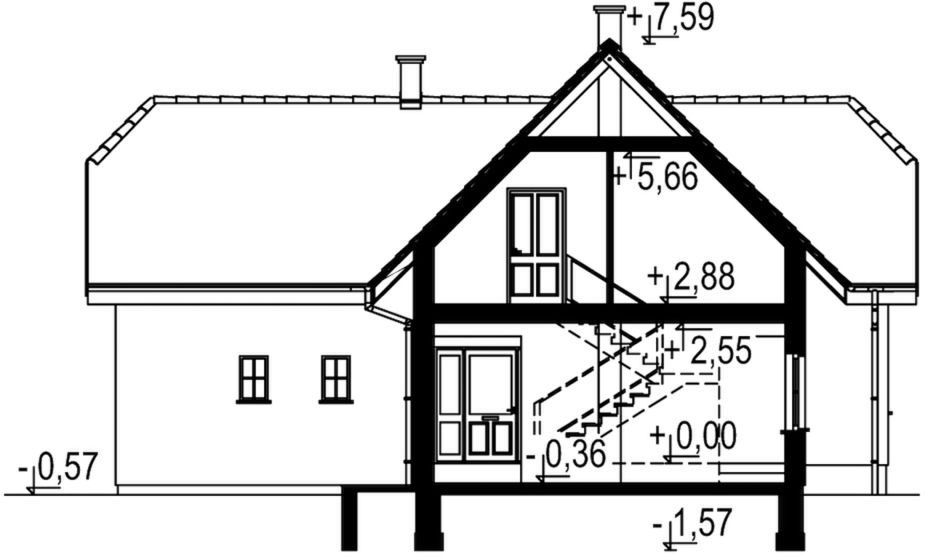 Graficzne opracowanie rzutów poglądowych widocznych na karcie projektu zostało wykonane przez Extradom.pl. Prezentowane przez Extradom.pl wizualizacje wykonane zostały przez autora projektu i należy poczytywać je jedynie za przykład i propozycję wykończenia, wizję architektoniczną autora projektu. Ostateczne wykończenie budynku może nastąpić na wiele sposobów. Szczegółowe rozwiązania zastosowane w oferowanej dokumentacji - w tym również ilość, lokalizacje i wygląd okien, drzwi, kominów - mogą w niewielkim stopniu różnić się od prezentowanej wizualizacji budynku.
