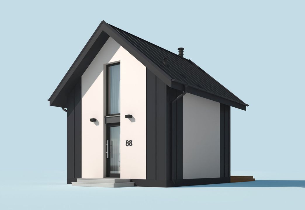 Graficzne opracowanie rzutów poglądowych widocznych na karcie projektu zostało wykonane przez Extradom.pl. Prezentowane przez Extradom.pl wizualizacje wykonane zostały przez autora projektu i należy poczytywać je jedynie za przykład i propozycję wykończenia, wizję architektoniczną autora projektu. Ostateczne wykończenie budynku może nastąpić na wiele sposobów. Szczegółowe rozwiązania zastosowane w oferowanej dokumentacji - w tym również ilość, lokalizacje i wygląd okien, drzwi, kominów - mogą w niewielkim stopniu różnić się od prezentowanej wizualizacji budynku.