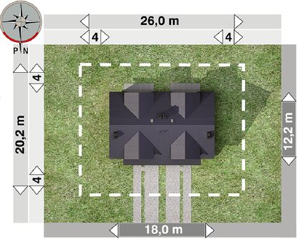 Graficzne opracowanie rzutów poglądowych widocznych na karcie projektu zostało wykonane przez Extradom.pl. Prezentowane przez Extradom.pl wizualizacje wykonane zostały przez autora projektu i należy poczytywać je jedynie za przykład i propozycję wykończenia, wizję architektoniczną autora projektu. Ostateczne wykończenie budynku może nastąpić na wiele sposobów. Szczegółowe rozwiązania zastosowane w oferowanej dokumentacji - w tym również ilość, lokalizacje i wygląd okien, drzwi, kominów - mogą w niewielkim stopniu różnić się od prezentowanej wizualizacji budynku.