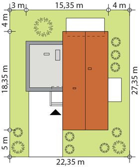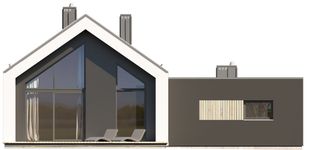 Graficzne opracowanie rzutów poglądowych widocznych na karcie projektu zostało wykonane przez Extradom.pl. Prezentowane przez Extradom.pl wizualizacje wykonane zostały przez autora projektu i należy poczytywać je jedynie za przykład i propozycję wykończenia, wizję architektoniczną autora projektu. Ostateczne wykończenie budynku może nastąpić na wiele sposobów. Szczegółowe rozwiązania zastosowane w oferowanej dokumentacji - w tym również ilość, lokalizacje i wygląd okien, drzwi, kominów - mogą w niewielkim stopniu różnić się od prezentowanej wizualizacji budynku.