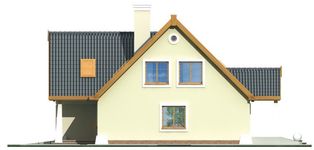 Graficzne opracowanie rzutów poglądowych widocznych na karcie projektu zostało wykonane przez Extradom.pl. Prezentowane przez Extradom.pl wizualizacje wykonane zostały przez autora projektu i należy poczytywać je jedynie za przykład i propozycję wykończenia, wizję architektoniczną autora projektu. Ostateczne wykończenie budynku może nastąpić na wiele sposobów. Szczegółowe rozwiązania zastosowane w oferowanej dokumentacji - w tym również ilość, lokalizacje i wygląd okien, drzwi, kominów - mogą w niewielkim stopniu różnić się od prezentowanej wizualizacji budynku.