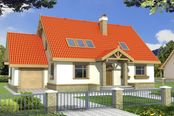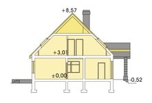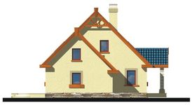 Graficzne opracowanie rzutów poglądowych widocznych na karcie projektu zostało wykonane przez Extradom.pl. Prezentowane przez Extradom.pl wizualizacje wykonane zostały przez autora projektu i należy poczytywać je jedynie za przykład i propozycję wykończenia, wizję architektoniczną autora projektu. Ostateczne wykończenie budynku może nastąpić na wiele sposobów. Szczegółowe rozwiązania zastosowane w oferowanej dokumentacji - w tym również ilość, lokalizacje i wygląd okien, drzwi, kominów - mogą w niewielkim stopniu różnić się od prezentowanej wizualizacji budynku.