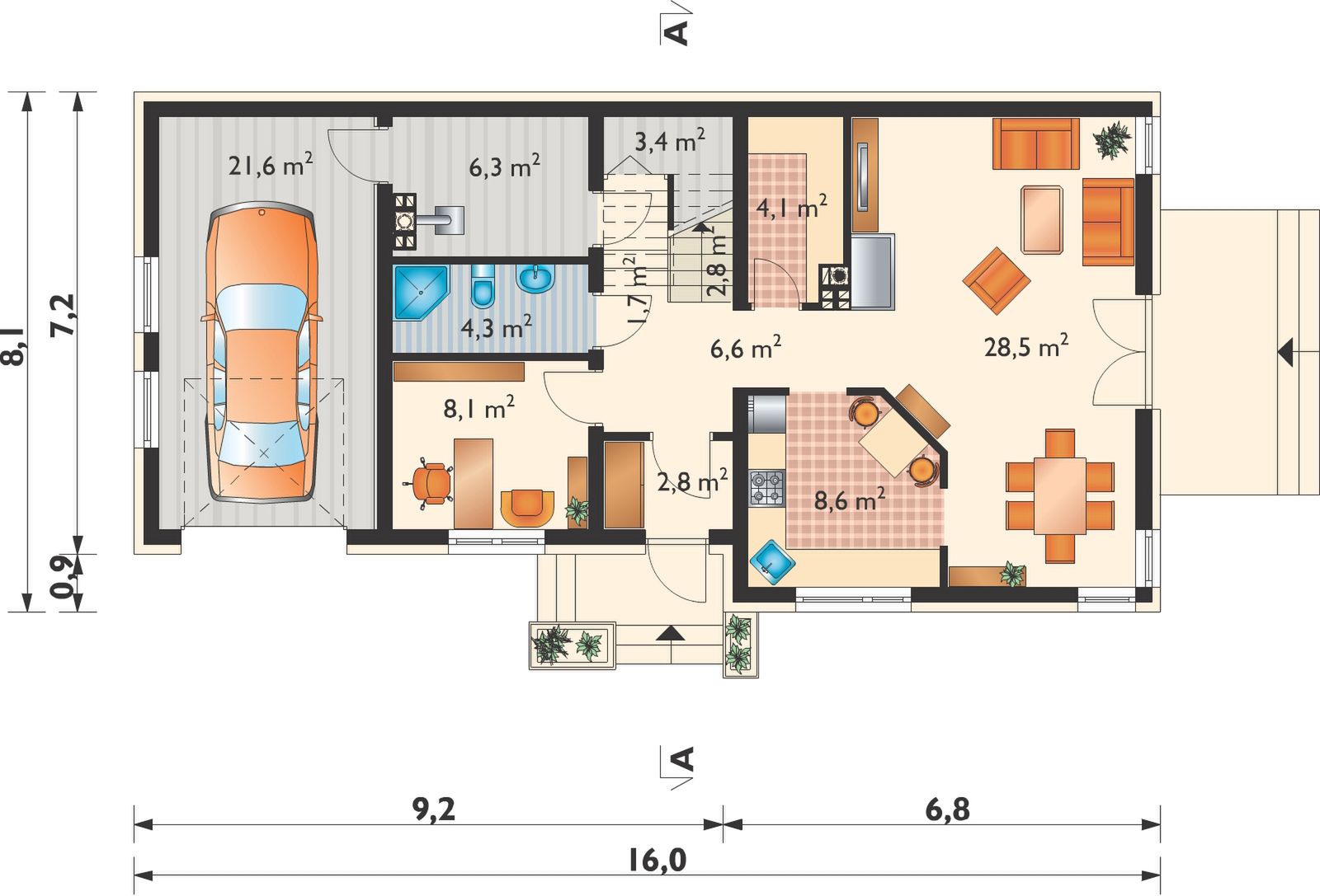 murowana – beton komórkowy ściany zewnętrzne: bloczki z betonu komórkowego solbet optimal gr. 24 cm + wełna mineralna fasrock max lub frontrock max gr. 15 cm ściany wewnętrzne: bloczki z betonu komórkowego solbet optimal gr. 24 cm, działowe: 12 cm strop: żelbetowy konstrukcja dachu: drewniana, jętkowa rodzaj schodów: żelbetowe