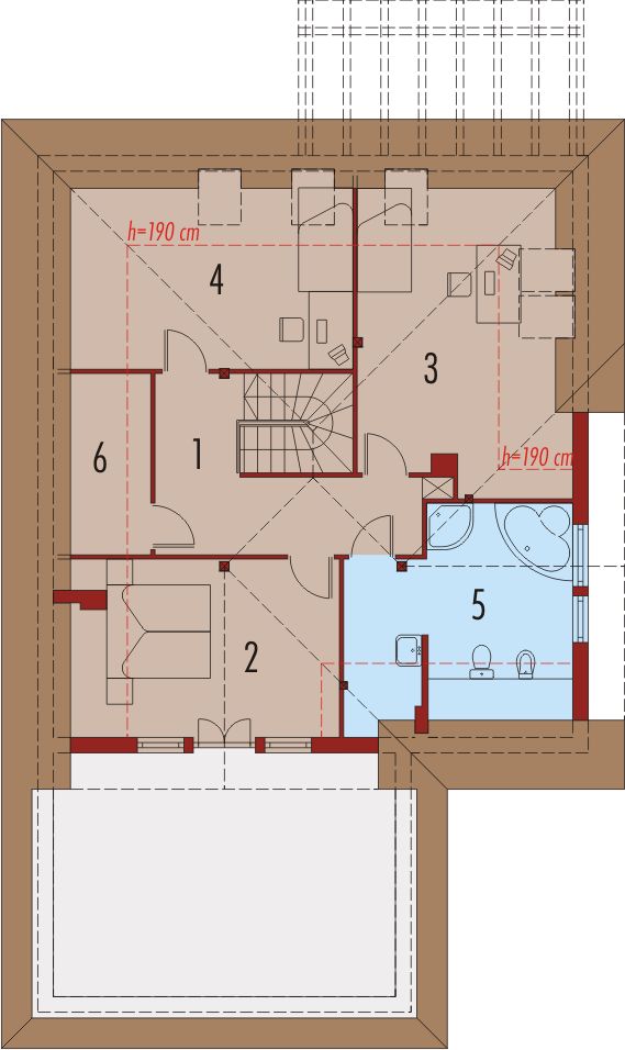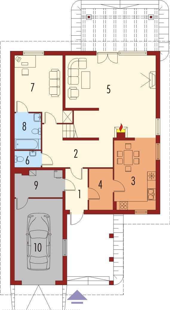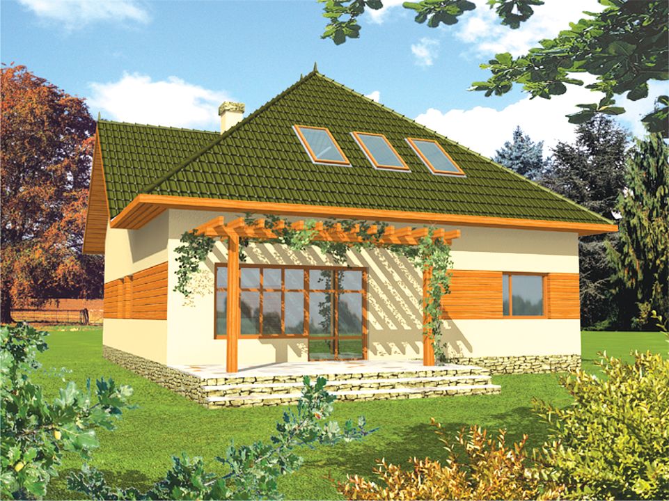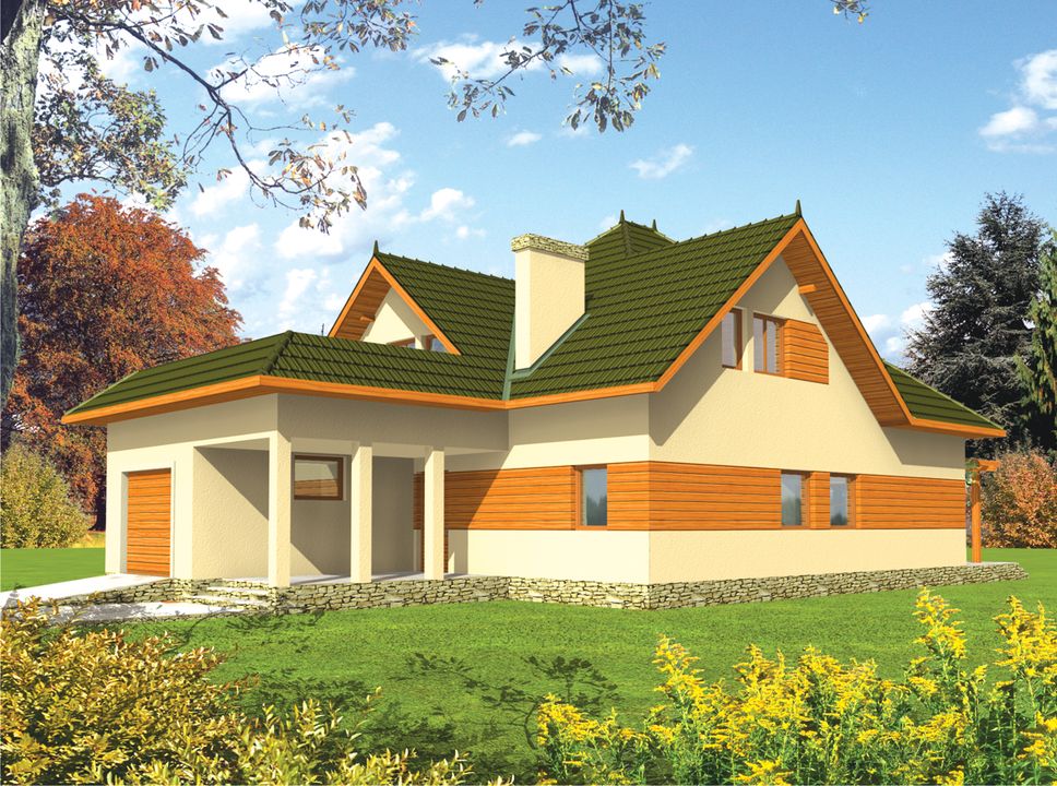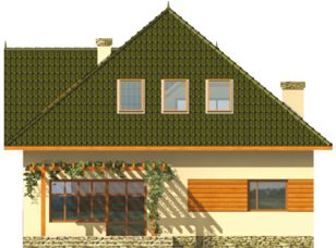 Graficzne opracowanie rzutów poglądowych widocznych na karcie projektu zostało wykonane przez Extradom.pl. Prezentowane przez Extradom.pl wizualizacje wykonane zostały przez autora projektu i należy poczytywać je jedynie za przykład i propozycję wykończenia, wizję architektoniczną autora projektu. Ostateczne wykończenie budynku może nastąpić na wiele sposobów. Szczegółowe rozwiązania zastosowane w oferowanej dokumentacji - w tym również ilość, lokalizacje i wygląd okien, drzwi, kominów - mogą w niewielkim stopniu różnić się od prezentowanej wizualizacji budynku.
