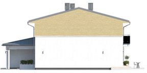 Graficzne opracowanie rzutów poglądowych widocznych na karcie projektu zostało wykonane przez Extradom.pl. Prezentowane przez Extradom.pl wizualizacje wykonane zostały przez autora projektu i należy poczytywać je jedynie za przykład i propozycję wykończenia, wizję architektoniczną autora projektu. Ostateczne wykończenie budynku może nastąpić na wiele sposobów. Szczegółowe rozwiązania zastosowane w oferowanej dokumentacji - w tym również ilość, lokalizacje i wygląd okien, drzwi, kominów - mogą w niewielkim stopniu różnić się od prezentowanej wizualizacji budynku.