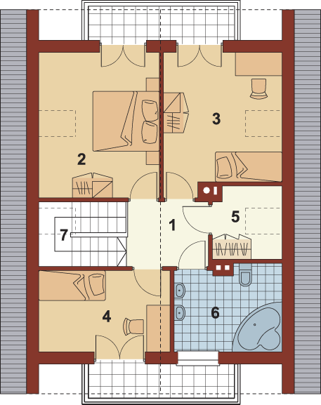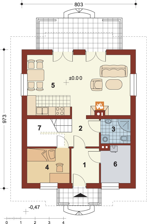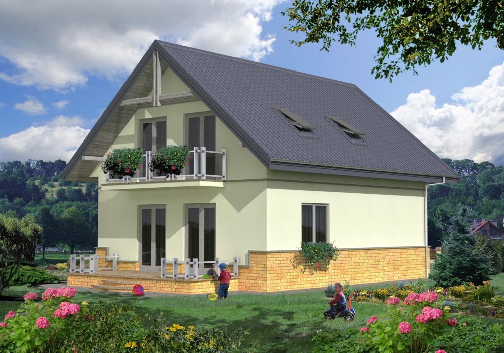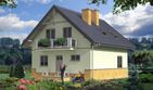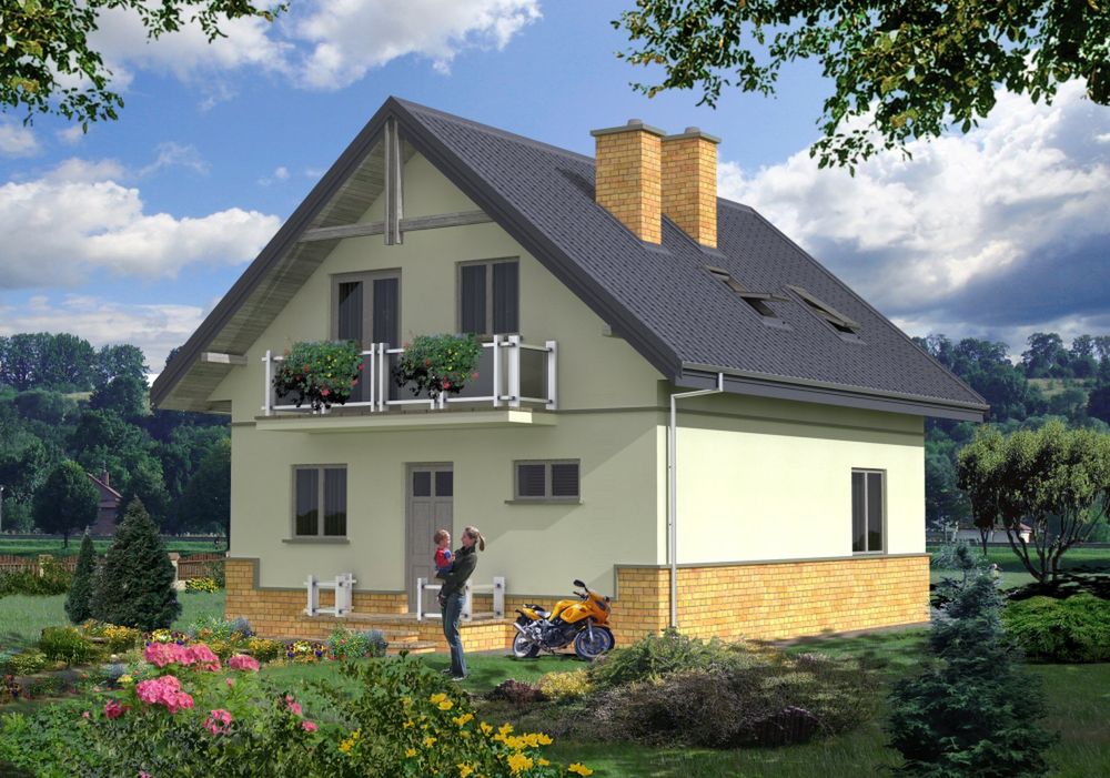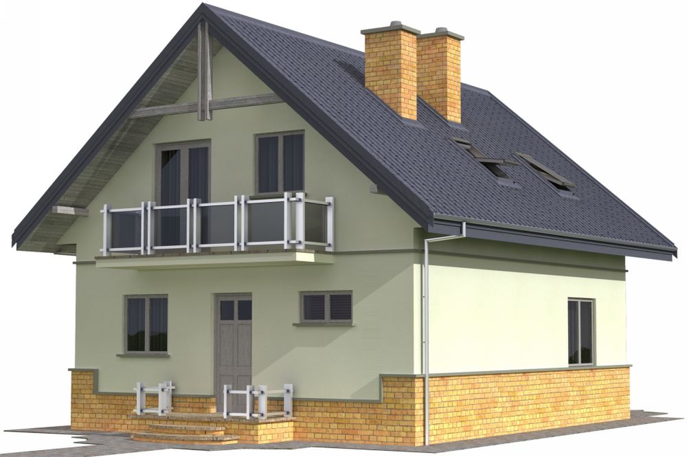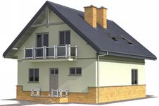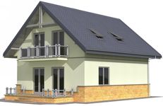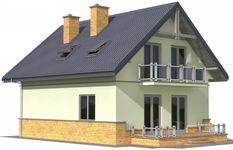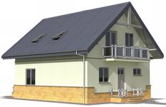 Graficzne opracowanie rzutów poglądowych widocznych na karcie projektu zostało wykonane przez Extradom.pl. Prezentowane przez Extradom.pl wizualizacje wykonane zostały przez autora projektu i należy poczytywać je jedynie za przykład i propozycję wykończenia, wizję architektoniczną autora projektu. Ostateczne wykończenie budynku może nastąpić na wiele sposobów. Szczegółowe rozwiązania zastosowane w oferowanej dokumentacji - w tym również ilość, lokalizacje i wygląd okien, drzwi, kominów - mogą w niewielkim stopniu różnić się od prezentowanej wizualizacji budynku.