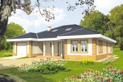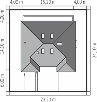 Graficzne opracowanie rzutów poglądowych widocznych na karcie projektu zostało wykonane przez Extradom.pl. Prezentowane przez Extradom.pl wizualizacje wykonane zostały przez autora projektu i należy poczytywać je jedynie za przykład i propozycję wykończenia, wizję architektoniczną autora projektu. Ostateczne wykończenie budynku może nastąpić na wiele sposobów. Szczegółowe rozwiązania zastosowane w oferowanej dokumentacji - w tym również ilość, lokalizacje i wygląd okien, drzwi, kominów - mogą w niewielkim stopniu różnić się od prezentowanej wizualizacji budynku.