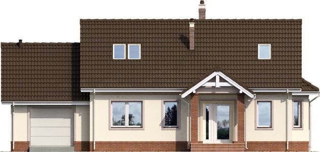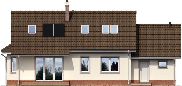 Graficzne opracowanie rzutów poglądowych widocznych na karcie projektu zostało wykonane przez Extradom.pl. Prezentowane przez Extradom.pl wizualizacje wykonane zostały przez autora projektu i należy poczytywać je jedynie za przykład i propozycję wykończenia, wizję architektoniczną autora projektu. Ostateczne wykończenie budynku może nastąpić na wiele sposobów. Szczegółowe rozwiązania zastosowane w oferowanej dokumentacji - w tym również ilość, lokalizacje i wygląd okien, drzwi, kominów - mogą w niewielkim stopniu różnić się od prezentowanej wizualizacji budynku.