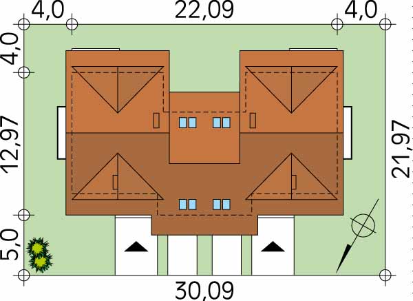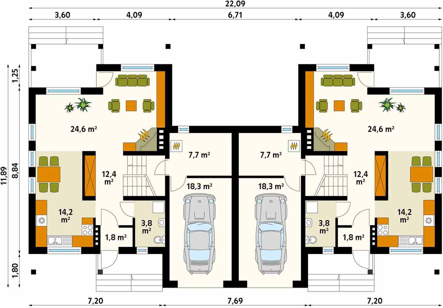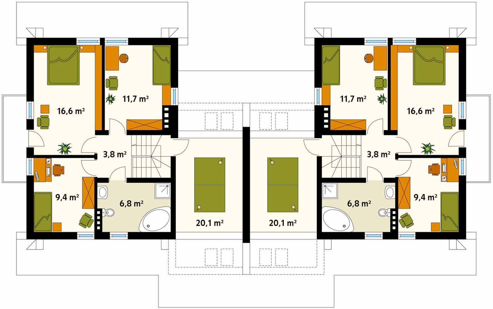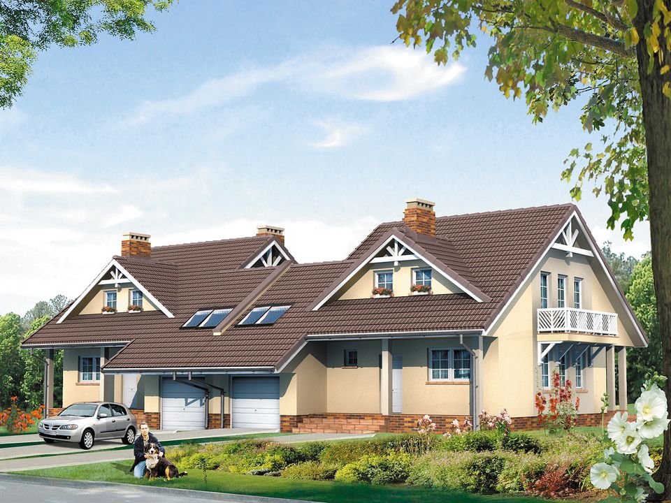 Graficzne opracowanie rzutów poglądowych widocznych na karcie projektu zostało wykonane przez Extradom.pl. Prezentowane przez Extradom.pl wizualizacje wykonane zostały przez autora projektu i należy poczytywać je jedynie za przykład i propozycję wykończenia, wizję architektoniczną autora projektu. Ostateczne wykończenie budynku może nastąpić na wiele sposobów. Szczegółowe rozwiązania zastosowane w oferowanej dokumentacji - w tym również ilość, lokalizacje i wygląd okien, drzwi, kominów - mogą w niewielkim stopniu różnić się od prezentowanej wizualizacji budynku.