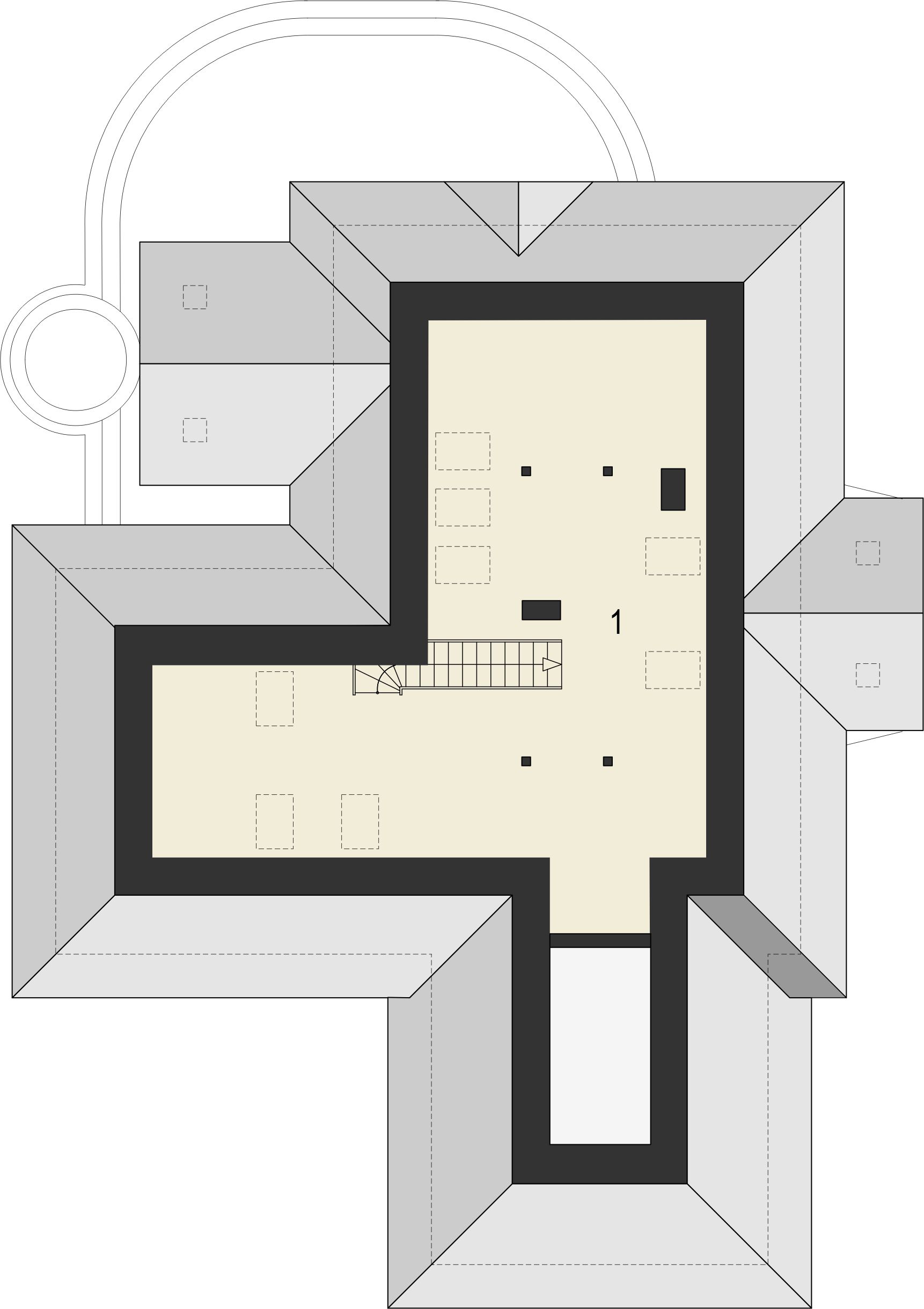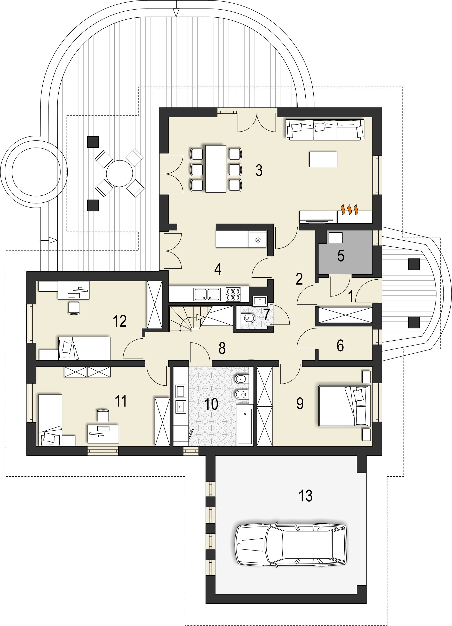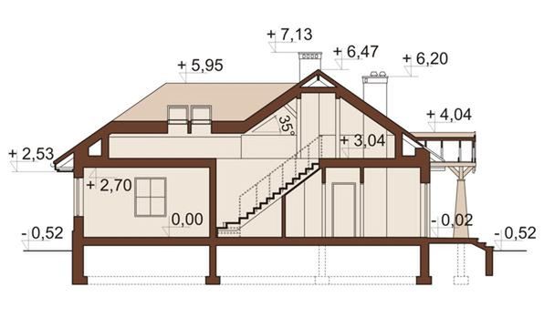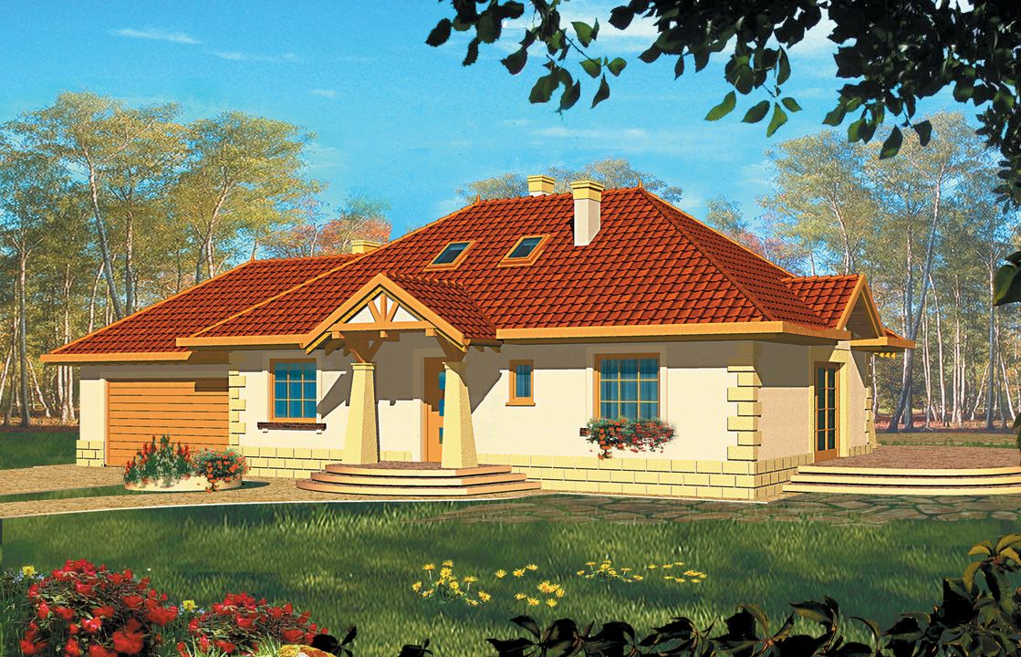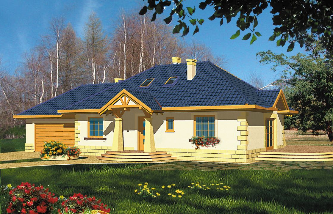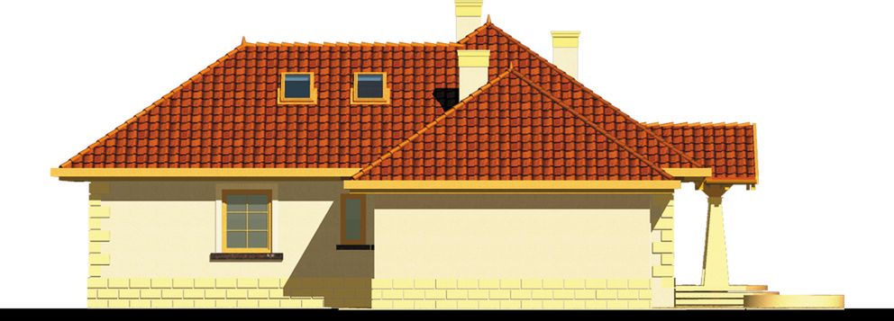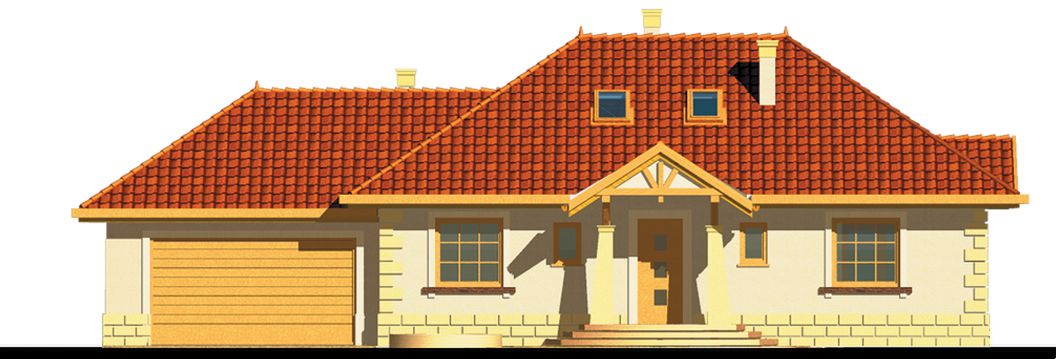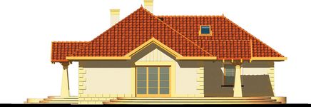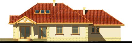 Graficzne opracowanie rzutów poglądowych widocznych na karcie projektu zostało wykonane przez Extradom.pl. Prezentowane przez Extradom.pl wizualizacje wykonane zostały przez autora projektu i należy poczytywać je jedynie za przykład i propozycję wykończenia, wizję architektoniczną autora projektu. Ostateczne wykończenie budynku może nastąpić na wiele sposobów. Szczegółowe rozwiązania zastosowane w oferowanej dokumentacji - w tym również ilość, lokalizacje i wygląd okien, drzwi, kominów - mogą w niewielkim stopniu różnić się od prezentowanej wizualizacji budynku.
