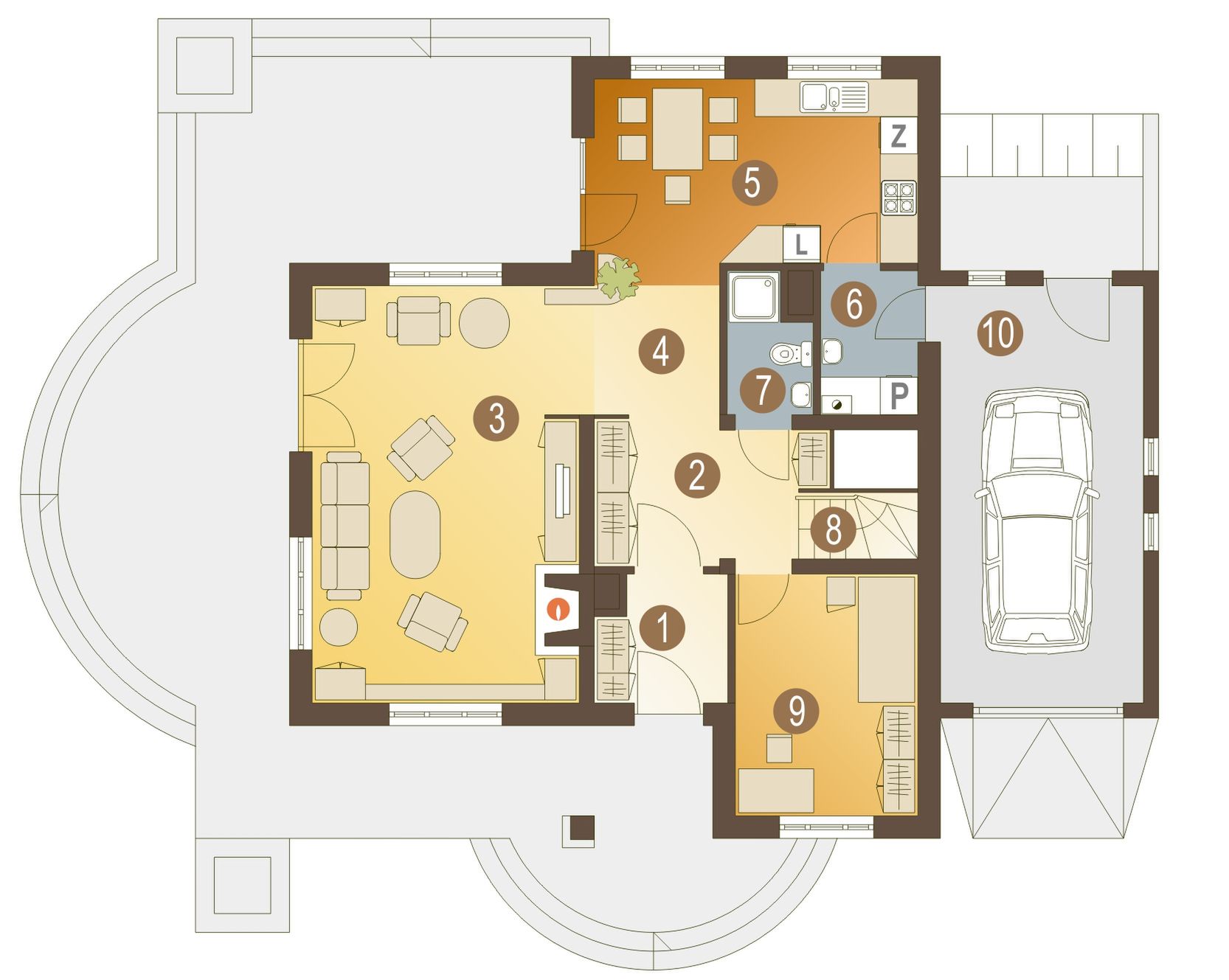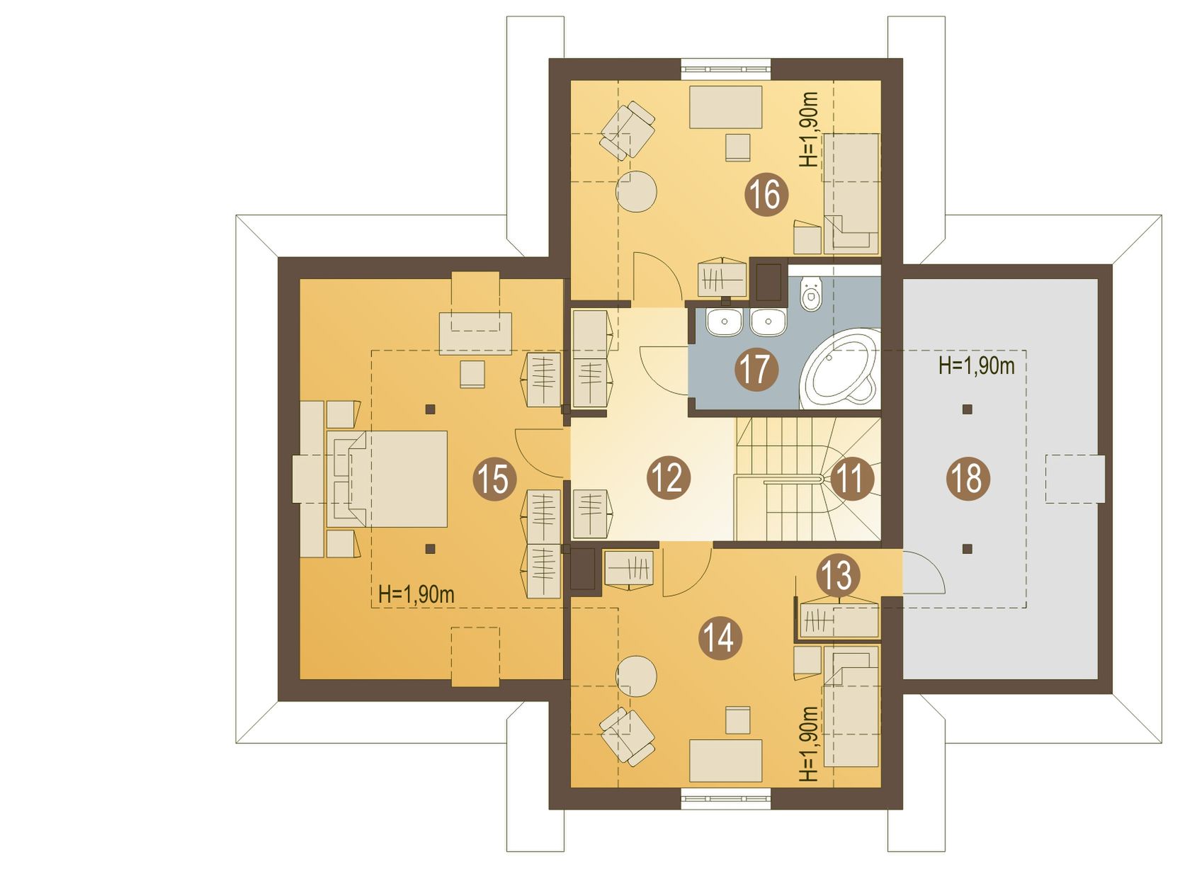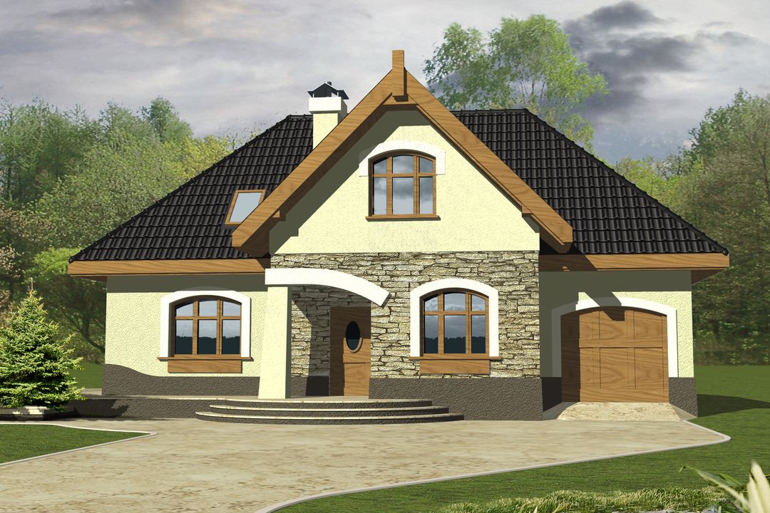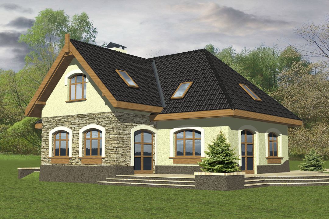 Projekt domu Lissa z garażem 1-st. [A] jest doskonałym rozwiązaniem dla osób posiadających średniej szerokości działkę. Dom charakteryzuje się bryłą w kształcie litery L, co sprawia, że prezentuje się niebanalnie. W tym projekcie kalenica usytuowana jest równolegle do drogi, co jest bardzo istotne, gdy wymagają tego warunki zabudowy. Projekt został stworzony z myślą o działkach pozwalających na usytuowanie domu w zabudowie wolnostojącej. W projekcie uwzględniono garaż jednostanowiskowy w bryle budynku. Konstrukcja budynku przykryta jest dachem kopertowym, który doskonale chroni budynek przed niekorzystną pogodą. Projekt dedykowany jest w szczególności osobom posiadającym działkę z wjazdem od strony południowej. Projekt Lissa z garażem 1-st. [A] to dom parterowy z poddaszem użytkowym, co sprawia, że jego powierzchnia jest wyraźnie podzielona na strefy: dzienną i nocną.Projekt domu charakteryzuje się przestronną strefą dzienną. Tworzy ją między innymi funkcjonalna kuchnia, która spełni marzenie każdej gospodyni. Ciekawym elementem jest z pewnością usytuowany w salonie kominek, który nada wnętrzu niepowtarzalny klimat. W pełni funkcjonalną łazienkę przewidziano zarówno na parterze, jak i poddaszu, co jest świetnym rozwiązaniem dla większej ilości domowników. Strefa sypialniana składa się z czterech pokoi, co jest doskonałą opcją dla 4-6 osobowej rodziny. Przestrzeń można wykorzystać także jako pokój dla gości lub gabinet. Taras przy domu sprzyja spędzaniu czasu na świeżym powietrzu. Zalecana przez architekta technologia murowana zapewnia trwałość i solidność konstrukcji. Jego wygląd nawiązuje do stylu tradycyjnego, co jest idealnym rozwiązaniem dla osób ceniących klasykę i prostotę.