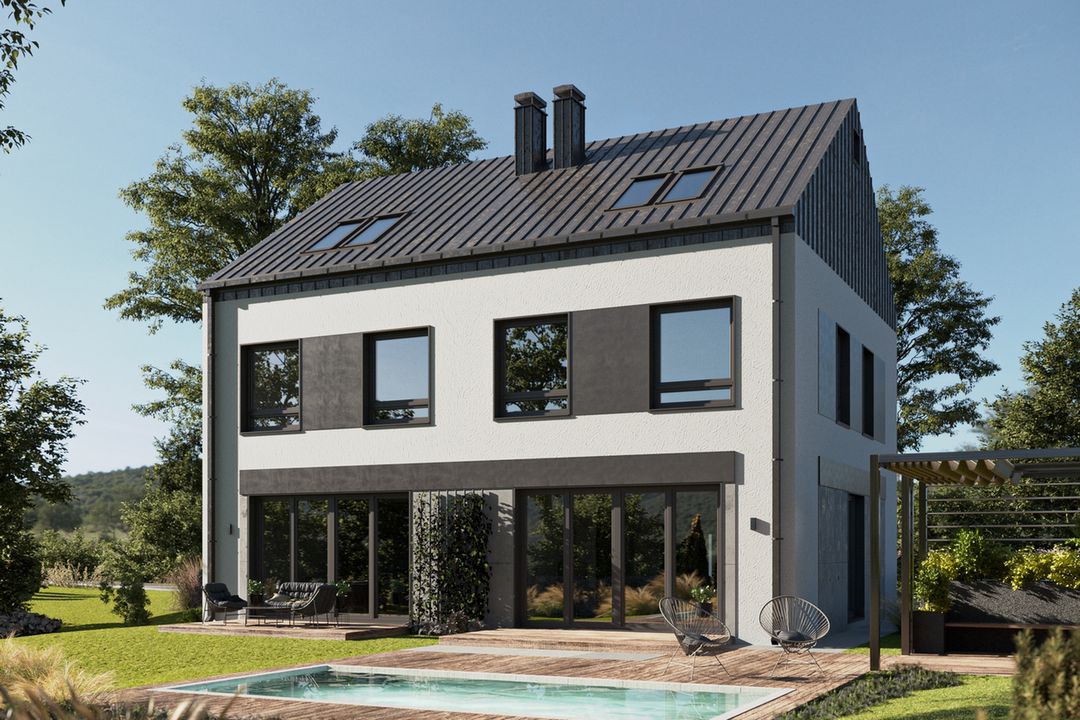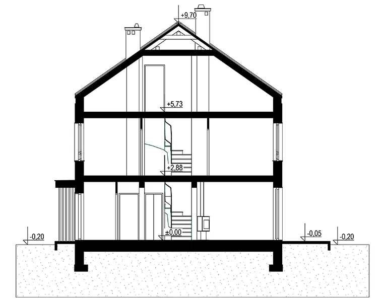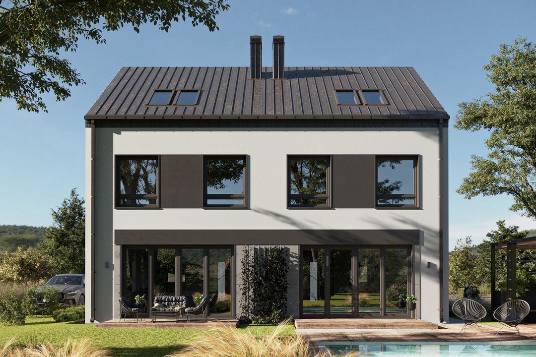 Wersja technologiczna: murowana - silikaty. Izolacja termiczna ścian zewnętrznych: Termo Organika TERMONIUM FASADA / alternatywnie Gór-Stal płyta izolacyjna termPIR ETX. Strop: żelbetowy monolityczny. Typ schodów: płytowe żelbetowe. Konstrukcja dachu: drewniana krokwiowo płatwiowa. Pokrycie dachowe: blacha na rąbek stojący. Typ ogrzewania: Kocioł na gaz. Dostępna wersja z pompą ciepła: Tak. Wentylacja: grawitacyjna. Ściany zewnętrzne: 24 cm bloczki silikatowe. Ściany wewnętrzne: 24 cm bloczki silikatowe. Ściany wewnętrzne działowe: 8 cm bloczki silikatowe. Wentylacja: grawitacyjna.