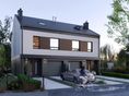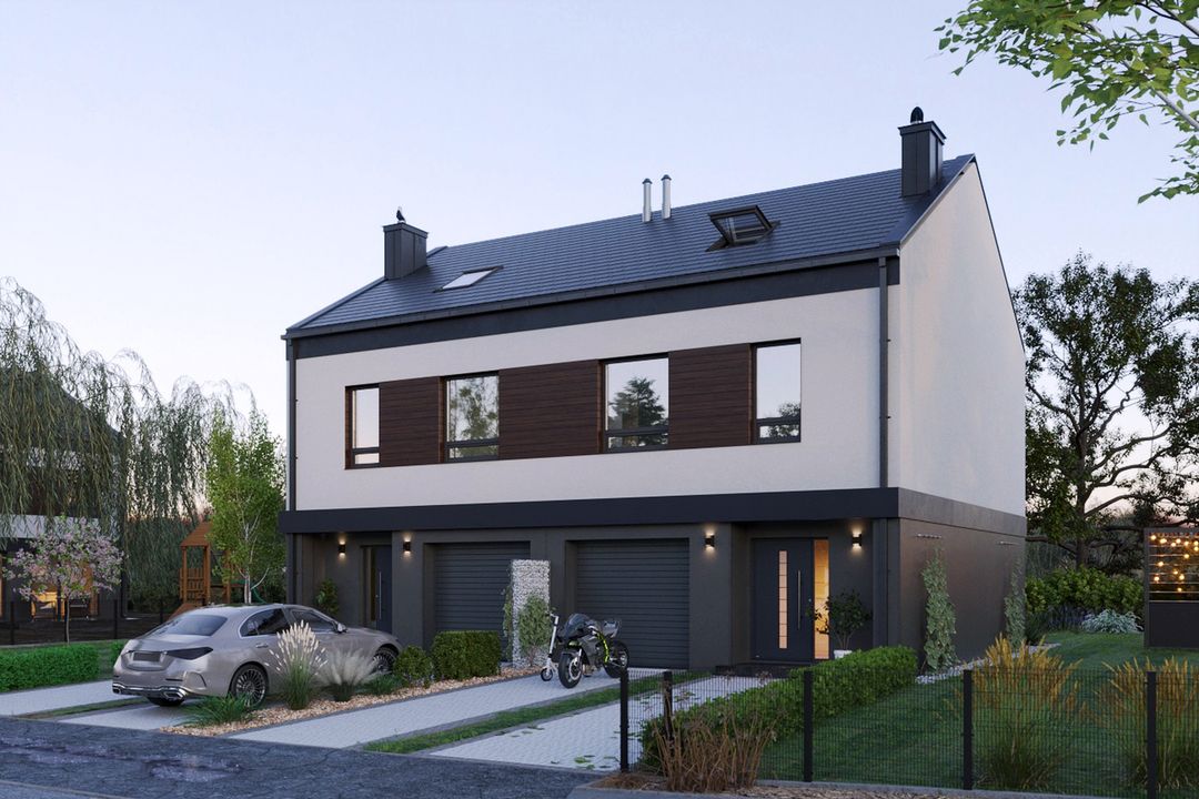 Graficzne opracowanie rzutów poglądowych widocznych na karcie projektu zostało wykonane przez Extradom.pl. Prezentowane przez Extradom.pl wizualizacje wykonane zostały przez autora projektu i należy poczytywać je jedynie za przykład i propozycję wykończenia, wizję architektoniczną autora projektu. Ostateczne wykończenie budynku może nastąpić na wiele sposobów. Szczegółowe rozwiązania zastosowane w oferowanej dokumentacji - w tym również ilość, lokalizacje i wygląd okien, drzwi, kominów - mogą w niewielkim stopniu różnić się od prezentowanej wizualizacji budynku.