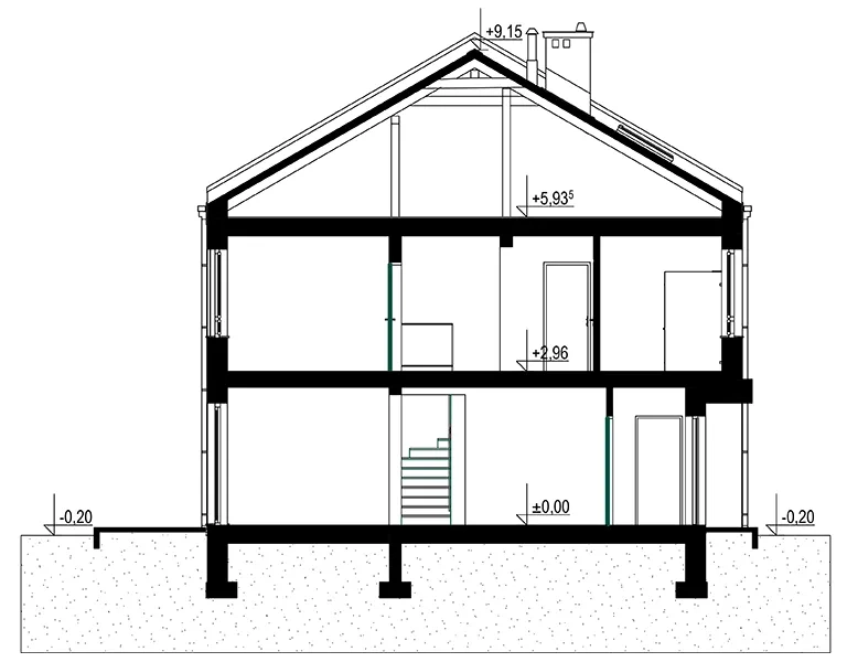 Wersja technologiczna: murowana - beton komórkowy. Strop: nad parterem: żelbetowy, nad piętrem: drewniany. Typ schodów: płytowe żelbetowe. Konstrukcja dachu: drewniana krokwiowo płatwiowa. Pokrycie dachowe: dachówka. Typ ogrzewania: Kocioł na gaz. Dostępna wersja z pompą ciepła: Tak. Dostępna wersja z fotowoltaiką: Tak. Wentylacja: grawitacyjna. Ściany zewnętrzne: 24 cm beton komórkowy Solbet Optimal. Ściany wewnętrzne: 24 cm beton komórkowy Solbet Optimal. Ściany wewnętrzne działowe: 12 cm beton komórkowy Solbet One. Wentylacja: grawitacyjna.