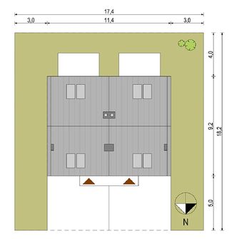Graficzne opracowanie rzutów poglądowych widocznych na karcie projektu zostało wykonane przez Extradom.pl. Prezentowane przez Extradom.pl wizualizacje wykonane zostały przez autora projektu i należy poczytywać je jedynie za przykład i propozycję wykończenia, wizję architektoniczną autora projektu. Ostateczne wykończenie budynku może nastąpić na wiele sposobów. Szczegółowe rozwiązania zastosowane w oferowanej dokumentacji - w tym również ilość, lokalizacje i wygląd okien, drzwi, kominów - mogą w niewielkim stopniu różnić się od prezentowanej wizualizacji budynku.