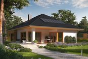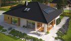 Graficzne opracowanie rzutów poglądowych widocznych na karcie projektu zostało wykonane przez Extradom.pl. Prezentowane przez Extradom.pl wizualizacje wykonane zostały przez autora projektu i należy poczytywać je jedynie za przykład i propozycję wykończenia, wizję architektoniczną autora projektu. Ostateczne wykończenie budynku może nastąpić na wiele sposobów. Szczegółowe rozwiązania zastosowane w oferowanej dokumentacji - w tym również ilość, lokalizacje i wygląd okien, drzwi, kominów - mogą w niewielkim stopniu różnić się od prezentowanej wizualizacji budynku.