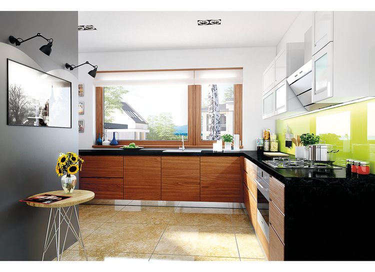 Ściany zewnętrzne: dwuwarstwowe murowane. Strop: gęstożebrowy. Dach: konstrukcja drewniana, ocieplenie wełna mineralna, dachówka ceramiczna Röben. Więźba dachowa dostępna również w systemie prefabrykacji drewnianej. Inne: schody wewnętrzne drewniane. Ogrzewanie: kocioł gazowy, rozprowadzenie ciepła: grzejniki. Wentylacja: grawitacyjna. Elewacje: tynk mineralny w kolorze TO-PA001 z palety firmy Termo Organika i okładzina z płyty HPL z naturalną okleiną drewnianą firmy Prodema. Stolarka: drewniana lub PCV, drzwi wejściowe i brama garażowa firmy Hörmann W projekcie zastosowano rozwiązania firmy VELUX.