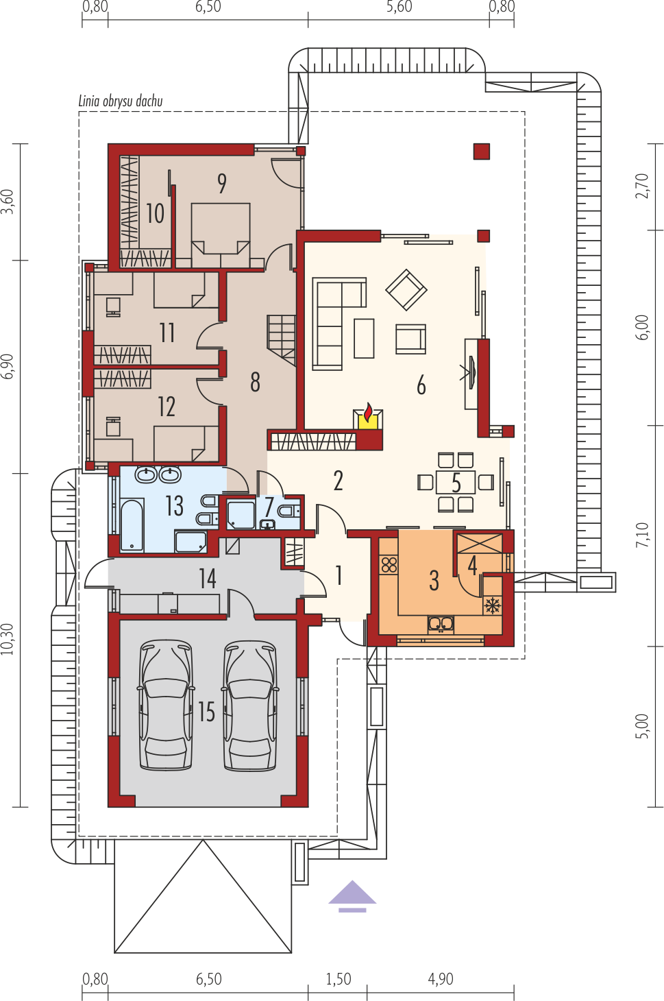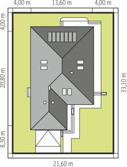 Graficzne opracowanie rzutów poglądowych widocznych na karcie projektu zostało wykonane przez Extradom.pl. Prezentowane przez Extradom.pl wizualizacje wykonane zostały przez autora projektu i należy poczytywać je jedynie za przykład i propozycję wykończenia, wizję architektoniczną autora projektu. Ostateczne wykończenie budynku może nastąpić na wiele sposobów. Szczegółowe rozwiązania zastosowane w oferowanej dokumentacji - w tym również ilość, lokalizacje i wygląd okien, drzwi, kominów - mogą w niewielkim stopniu różnić się od prezentowanej wizualizacji budynku.