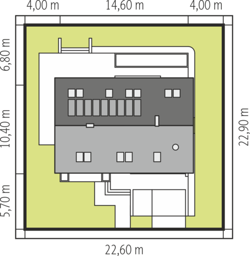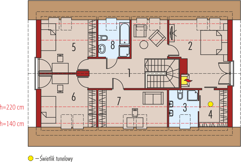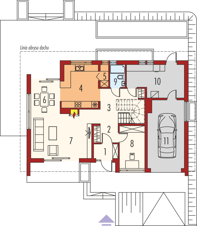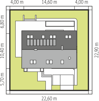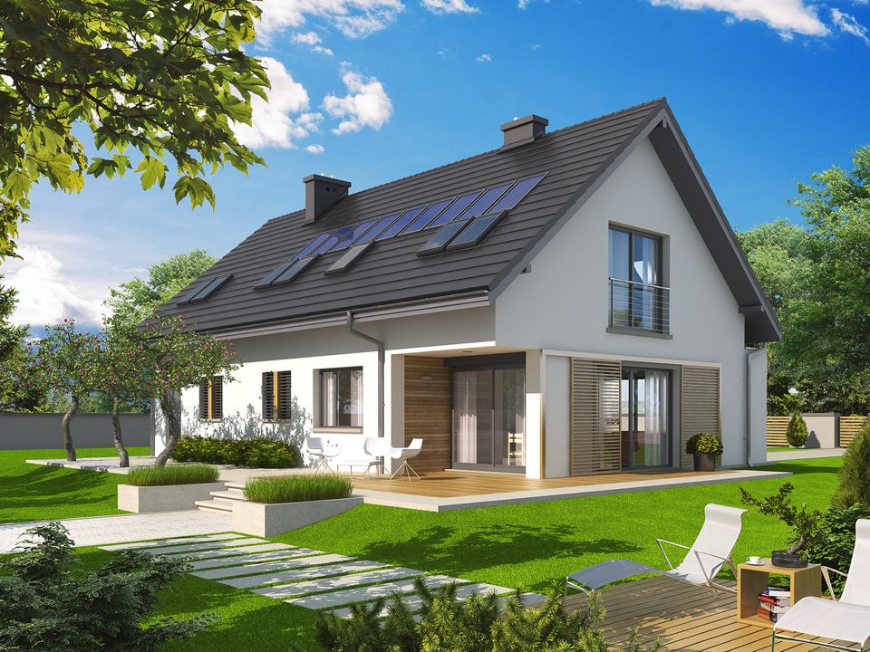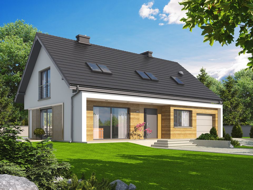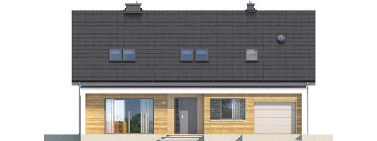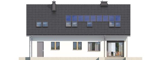Graficzne opracowanie rzutów poglądowych widocznych na karcie projektu zostało wykonane przez Extradom.pl. Prezentowane przez Extradom.pl wizualizacje wykonane zostały przez autora projektu i należy poczytywać je jedynie za przykład i propozycję wykończenia, wizję architektoniczną autora projektu. Ostateczne wykończenie budynku może nastąpić na wiele sposobów. Szczegółowe rozwiązania zastosowane w oferowanej dokumentacji - w tym również ilość, lokalizacje i wygląd okien, drzwi, kominów - mogą w niewielkim stopniu różnić się od prezentowanej wizualizacji budynku.