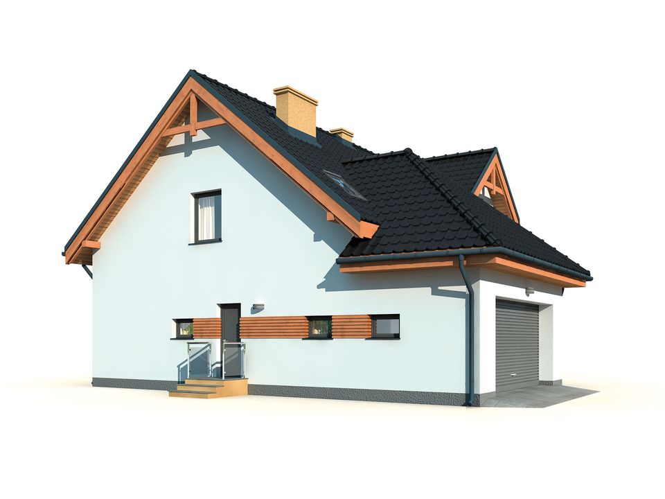 Technologia tradycyjna : - ściany zewnętrzne murowane grubości 30 cm + 12 cm styropian - ściany wewnętrzne (nośne) gr. 25 cm i działowe gr. 12 cm - wszystkie ściany wykonane z pustaków ceramicznych "POROTHERM" - strop gęstożebrowy "POROTHERM" o gr. 23 cm, nad garażem 27cm - konstrukcja więźby dachowej drewniana w układzie krokwiowo-jętkowym oraz krokwiowym - pokrycie dachówka ceramiczna - projekt posiada kominek - instalacja grzewcza: kocioł gazowy w kotłowni Zapytaj o dostępność projektu w wersji szkieletowej.