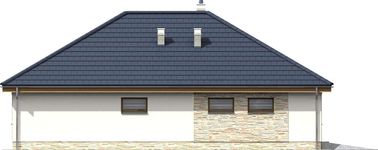 Graficzne opracowanie rzutów poglądowych widocznych na karcie projektu zostało wykonane przez Extradom.pl. Prezentowane przez Extradom.pl wizualizacje wykonane zostały przez autora projektu i należy poczytywać je jedynie za przykład i propozycję wykończenia, wizję architektoniczną autora projektu. Ostateczne wykończenie budynku może nastąpić na wiele sposobów. Szczegółowe rozwiązania zastosowane w oferowanej dokumentacji - w tym również ilość, lokalizacje i wygląd okien, drzwi, kominów - mogą w niewielkim stopniu różnić się od prezentowanej wizualizacji budynku.