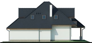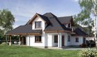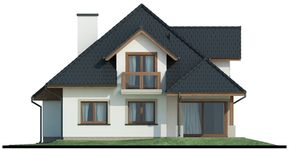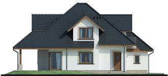 Graficzne opracowanie rzutów poglądowych widocznych na karcie projektu zostało wykonane przez Extradom.pl. Prezentowane przez Extradom.pl wizualizacje wykonane zostały przez autora projektu i należy poczytywać je jedynie za przykład i propozycję wykończenia, wizję architektoniczną autora projektu. Ostateczne wykończenie budynku może nastąpić na wiele sposobów. Szczegółowe rozwiązania zastosowane w oferowanej dokumentacji - w tym również ilość, lokalizacje i wygląd okien, drzwi, kominów - mogą w niewielkim stopniu różnić się od prezentowanej wizualizacji budynku.