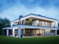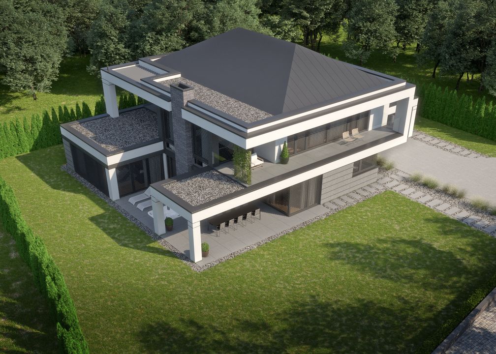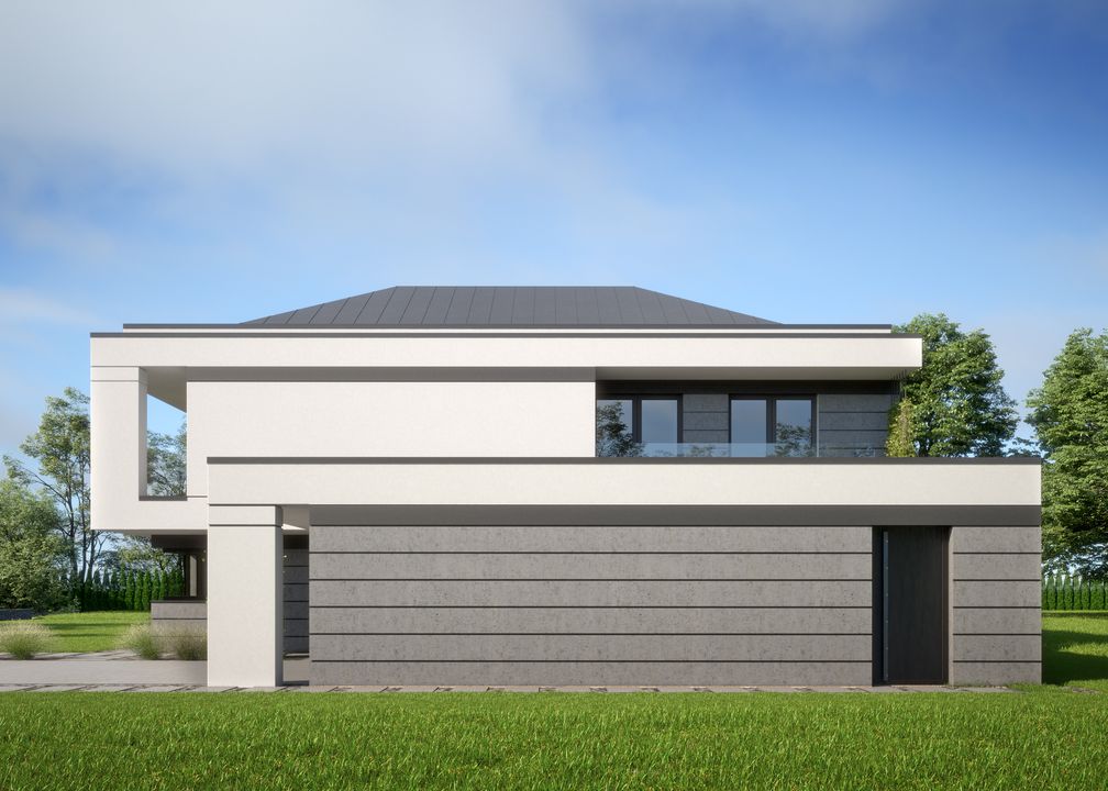Graficzne opracowanie rzutów poglądowych widocznych na karcie projektu zostało wykonane przez Extradom.pl. Prezentowane przez Extradom.pl wizualizacje wykonane zostały przez autora projektu i należy poczytywać je jedynie za przykład i propozycję wykończenia, wizję architektoniczną autora projektu. Ostateczne wykończenie budynku może nastąpić na wiele sposobów. Szczegółowe rozwiązania zastosowane w oferowanej dokumentacji - w tym również ilość, lokalizacje i wygląd okien, drzwi, kominów - mogą w niewielkim stopniu różnić się od prezentowanej wizualizacji budynku.