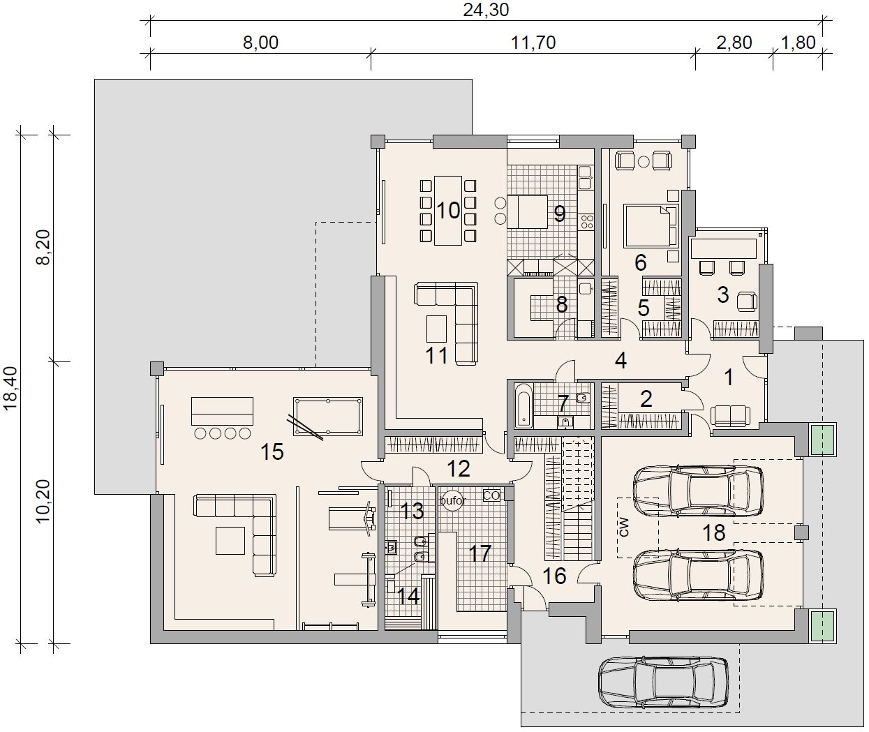Projekt stanowi aktualną i pełną dokumentację zawierającą część architektoniczno - budowlaną, konstrukcyjną wykonawczą, instalacji wewnętrznych, elektrycznych i teletechnicznych, charakterystykę energetyczną oraz uprawnienia projektantów. Dokumentacja zabezpieczona jest specjalną plombą, której usunięcie uniemożliwi jej zwrot. Zapraszamy do zamówienia analizy posiadanej działki w celu upewnienia się, że wybrany projekt domu idealnie na nią pasuje.