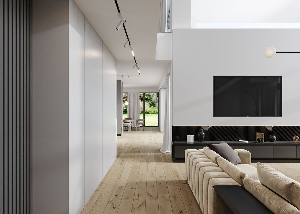 Graficzne opracowanie rzutów poglądowych widocznych na karcie projektu zostało wykonane przez Extradom.pl. Prezentowane przez Extradom.pl wizualizacje wykonane zostały przez autora projektu i należy poczytywać je jedynie za przykład i propozycję wykończenia, wizję architektoniczną autora projektu. Ostateczne wykończenie budynku może nastąpić na wiele sposobów. Szczegółowe rozwiązania zastosowane w oferowanej dokumentacji - w tym również ilość, lokalizacje i wygląd okien, drzwi, kominów - mogą w niewielkim stopniu różnić się od prezentowanej wizualizacji budynku.