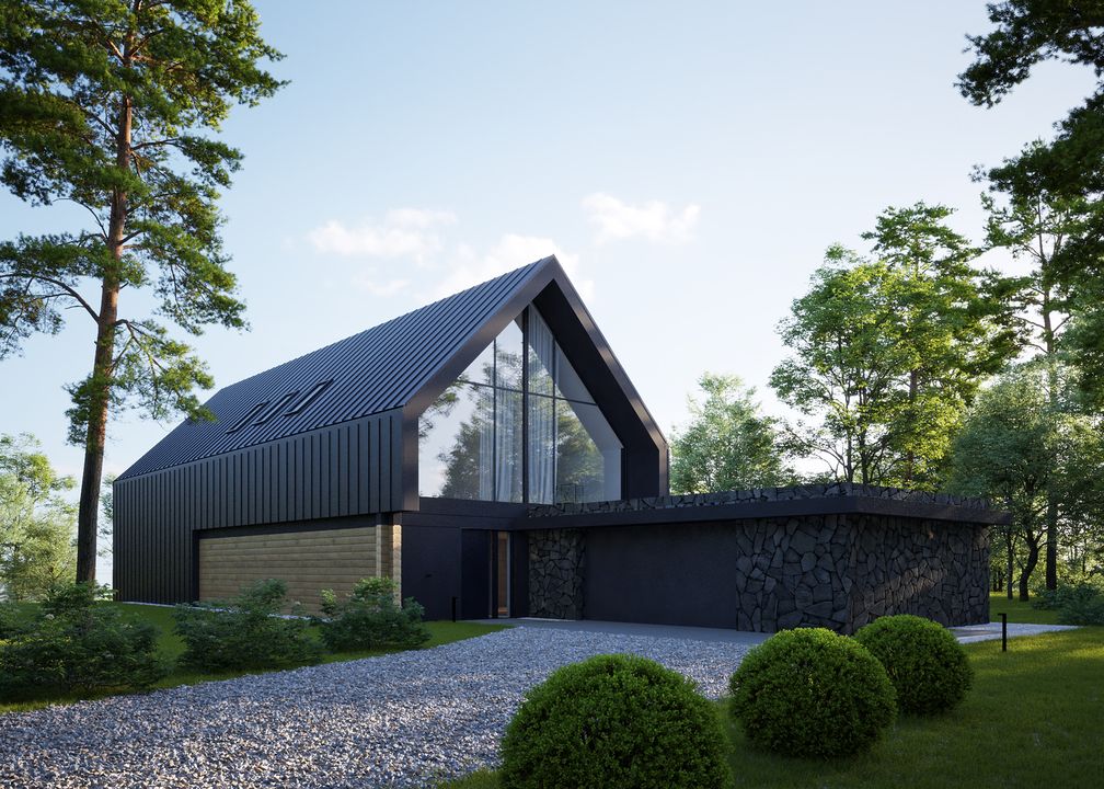Płyta fundamentowa żelbetowе. Ściany fundamentowe: żelbetowе. Ściany zewnętrzne: bloczek silikatowy Silka, docieplenie wełną mineralna ""ISOVER. Ściany wewnętrzne: nośne bloczek silikatowy Silka E18 18 cm. Ściany działowe bloczek silikatowy Silka E12 12 cm. Stropy żelbetowy, monolityczny. Konstrukcja dachu: drewniana , ocieplona wełną mineralną. Pokrycie dachu: blacha na rąbek stojący, kolor antracyt. Elewacje blacha na rąbek stojący w kolorze antracytowym, kamień naturalny elewacyjny- łupek filitowy czarny, imitacja bala na ruszcie systemowym - deska elewacyjna, półbal. Okna i drzwi: aluminiowe firmy Aluprof, brama garażowa Hörmann. Sposób ogrzewania: podłogowe, gazowe. Wentylacja: mechaniczna z rekuperacją.