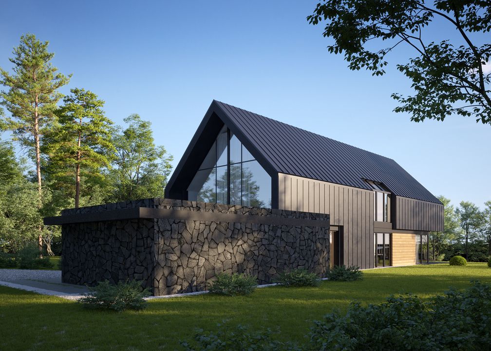 Graficzne opracowanie rzutów poglądowych widocznych na karcie projektu zostało wykonane przez Extradom.pl. Prezentowane przez Extradom.pl wizualizacje wykonane zostały przez autora projektu i należy poczytywać je jedynie za przykład i propozycję wykończenia, wizję architektoniczną autora projektu. Ostateczne wykończenie budynku może nastąpić na wiele sposobów. Szczegółowe rozwiązania zastosowane w oferowanej dokumentacji - w tym również ilość, lokalizacje i wygląd okien, drzwi, kominów - mogą w niewielkim stopniu różnić się od prezentowanej wizualizacji budynku.