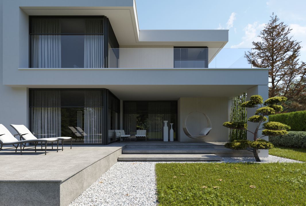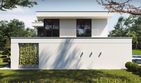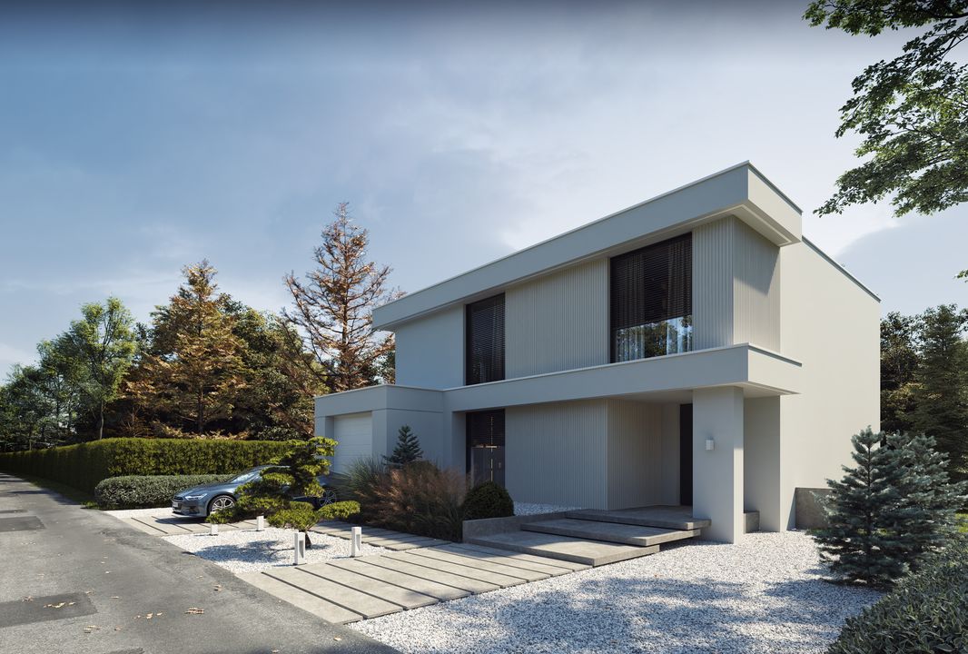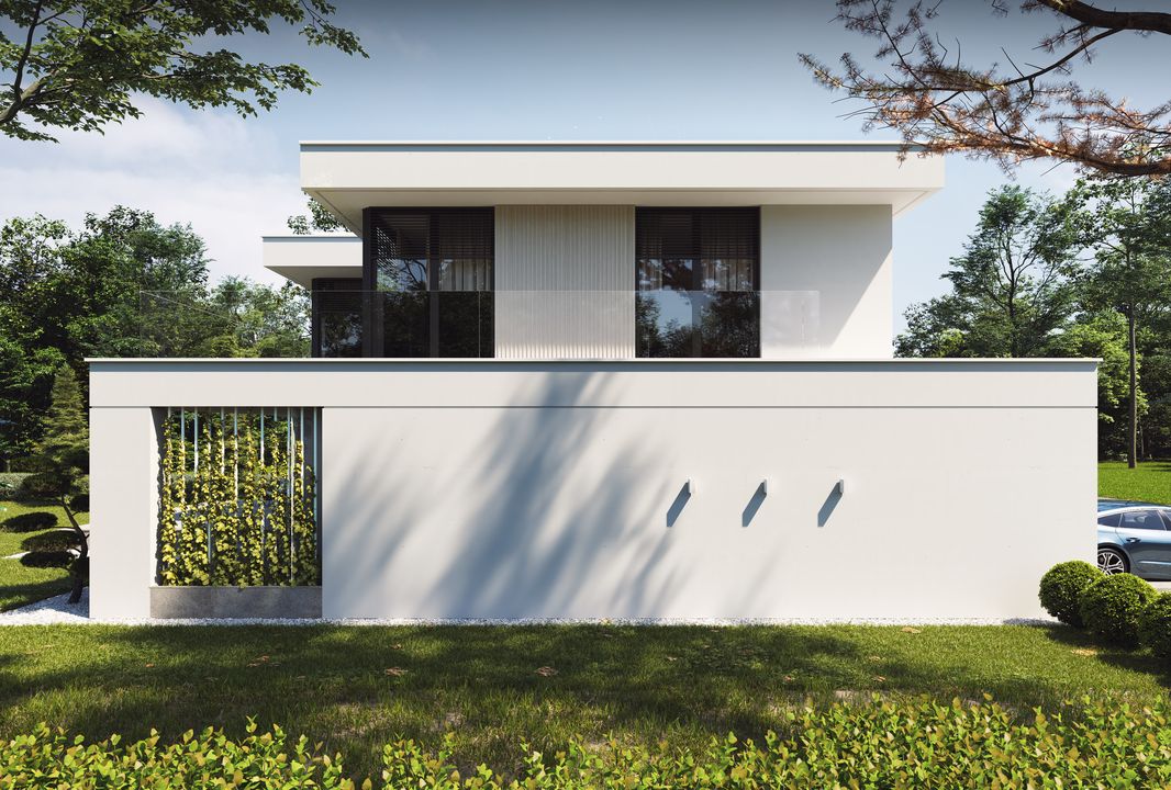 Płyta fundamentowa żelbetowе. Ściany zewnętrzne: pustak ceramiczny Porotherm 25 Dryfix o gr. 25 cm firmy Wienerberger, docieplenie styropianem o gr. 20 cm. Ściany wewnętrzne: nośne pustaki ceramiczne Porotherm Profi firmy Wienerberger o gr. 25 cm. Ściany działowe pustaki ceramiczne Porotherm Profi firmy Wienerberger o gr. 11,5cm. Stropy żelbetowy, monolityczny. Konstrukcja dachu: żelbetowa (stropodach), więźba drewniana (dach stromy). Pokrycie dachu: warstwa dociskowa ze żwiru płukanego. Elewacje tynk zewnętrzny kolor: biały; PŁYTY ELEWACYJNE EQUITONE LINEA strukturalne 3d kolor biały LT. Okna i drzwi: aluminiowe firmy Aluprof, brama garażowa Hörmann. Sposób ogrzewania: pompa ciepła, podłogowe. Wentylacja: mechaniczna z rekuperacją.