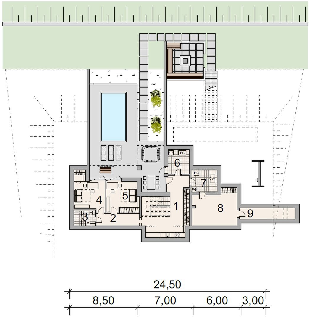 Projekt stanowi aktualną i pełną dokumentację zawierającą część architektoniczno - budowlaną, konstrukcyjną wykonawczą, instalacji wewnętrznych, elektrycznych i teletechnicznych, charakterystykę energetyczną oraz uprawnienia projektantów. Dokumentacja zabezpieczona jest specjalną plombą, której usunięcie uniemożliwi jej zwrot. Zapraszamy do zamówienia analizy posiadanej działki w celu upewnienia się, że wybrany projekt domu idealnie na nią pasuje.