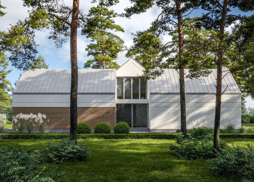 Płyta fundamentowa żelbetowa monolityczna o grub. 30 cm, styrodur XPS o grub. 20 cm firmy Termo Organika. Ściany fundamentowe: żelbetowe monolityczne, styrodur XPS o grub. 20 cm i 25 cm firmy Termo Organika. Ściany zewnętrzne: pustaki ceramiczne Porotherm Dryfix o grub. 25 cm firmy Wienerberger, styropian Termonium Plus Fasada o grub. 25 cm firmy Termo Organika / wełna mineralna Super-Vent Plus o grub. 20 cm firmy Isover. Ściany wewnętrzne: pustaki ceramiczne Porotherm Dryfix o grub. 25 cm i 11,5 cm firmy Wienerberger. Stropy żelbetowe monolityczne. Konstrukcja dachu: więźba dachowa, stropodach żelbetowy. Pokrycie dachu: blacha układana na rąbek stojący, kolor jasnoszary RAL 7036. Elewacje tynk zewnętrzny silikonowy, kolor biały; płytka klinkierowa, np.Terca Modena firmy Wienerberger, kolor szary; lamele kompozytowe, np. NewTechWood UH46 Oak; słupki drewniane kompozytowe, kolor jasnoszary RAL 7036. Okna i drzwi: aluminiowe, kolor jasnoszary RAL 7036. Sposób ogrzewania: podłogowe, powietrzna pompa ciepła, gazowe. Wentylacja: mechaniczna z rekuperacją.