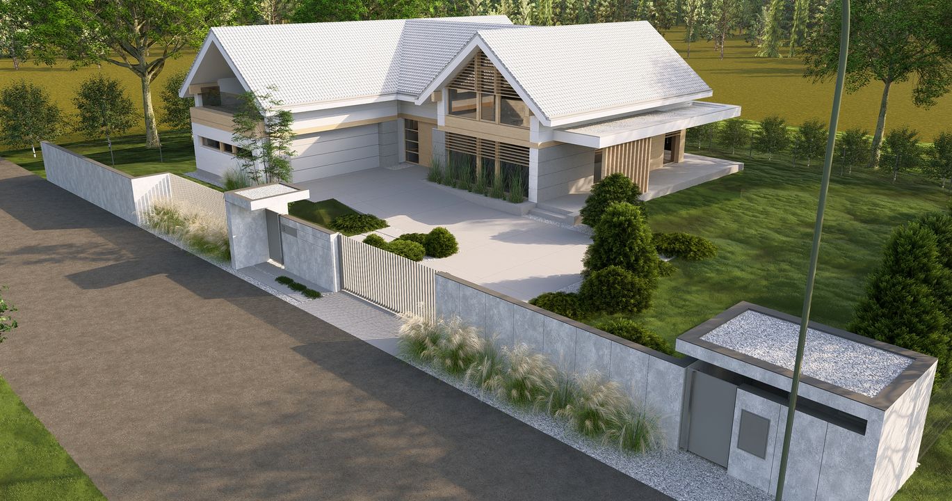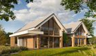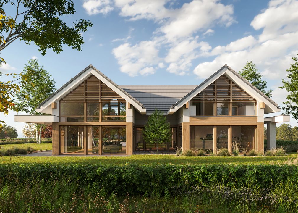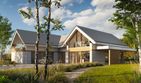 Graficzne opracowanie rzutów poglądowych widocznych na karcie projektu zostało wykonane przez Extradom.pl. Prezentowane przez Extradom.pl wizualizacje wykonane zostały przez autora projektu i należy poczytywać je jedynie za przykład i propozycję wykończenia, wizję architektoniczną autora projektu. Ostateczne wykończenie budynku może nastąpić na wiele sposobów. Szczegółowe rozwiązania zastosowane w oferowanej dokumentacji - w tym również ilość, lokalizacje i wygląd okien, drzwi, kominów - mogą w niewielkim stopniu różnić się od prezentowanej wizualizacji budynku.