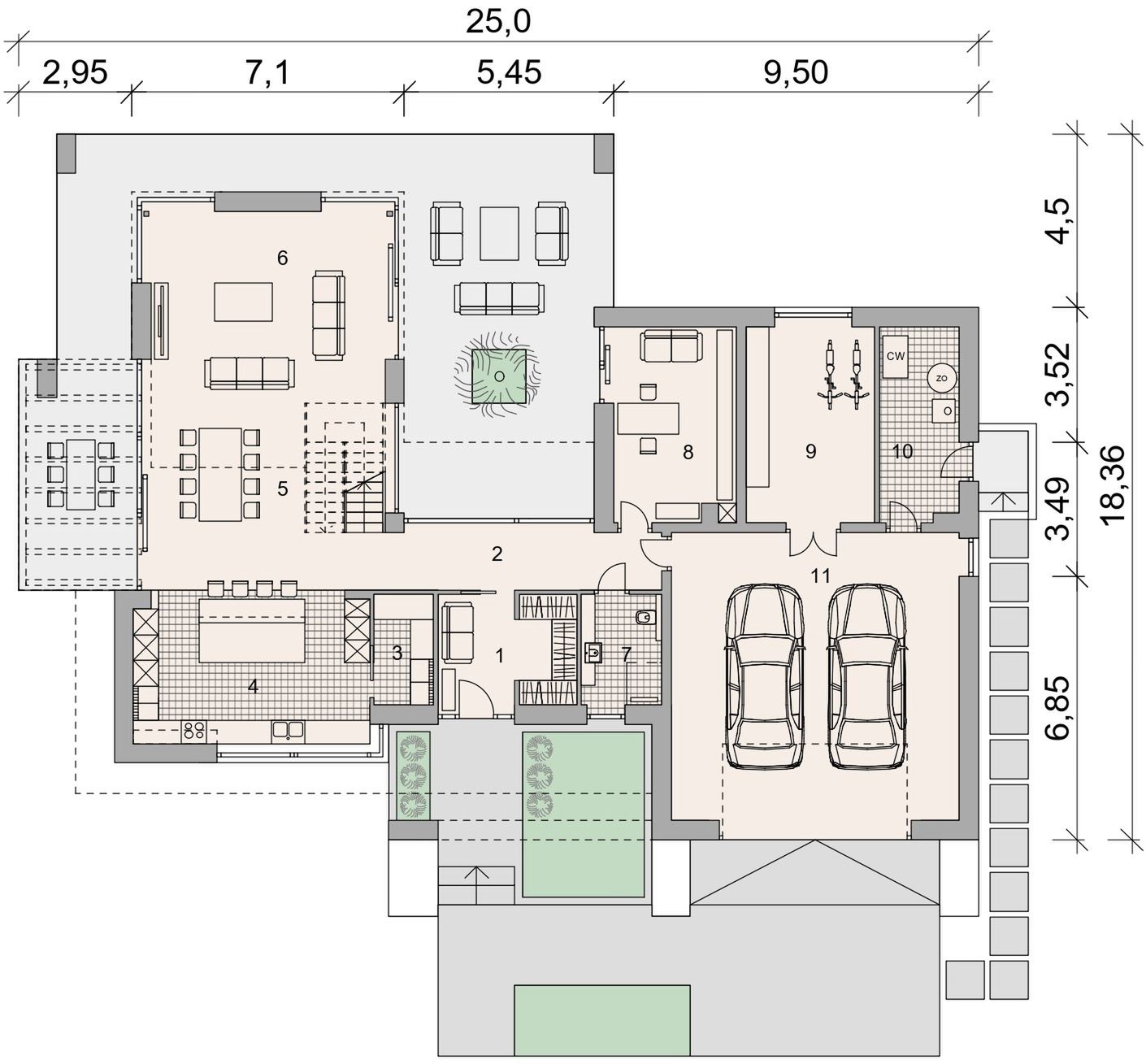 Projekt stanowi aktualną i pełną dokumentację zawierającą część architektoniczno - budowlaną, konstrukcyjną wykonawczą, instalacji wewnętrznych, elektrycznych i teletechnicznych, charakterystykę energetyczną oraz uprawnienia projektantów. Dokumentacja zabezpieczona jest specjalną plombą, której usunięcie uniemożliwi jej zwrot. Zapraszamy do zamówienia analizy posiadanej działki w celu upewnienia się, że wybrany projekt domu idealnie na nią pasuje.