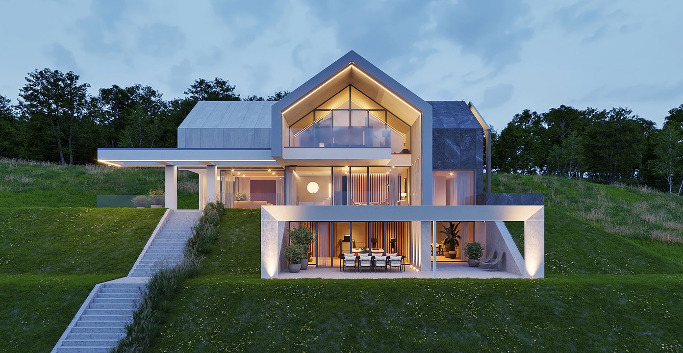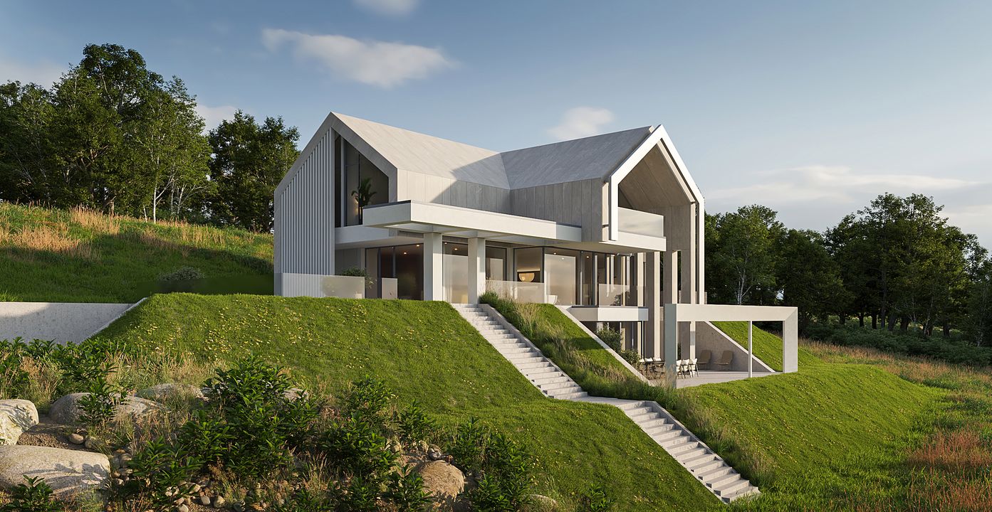 Graficzne opracowanie rzutów poglądowych widocznych na karcie projektu zostało wykonane przez Extradom.pl. Prezentowane przez Extradom.pl wizualizacje wykonane zostały przez autora projektu i należy poczytywać je jedynie za przykład i propozycję wykończenia, wizję architektoniczną autora projektu. Ostateczne wykończenie budynku może nastąpić na wiele sposobów. Szczegółowe rozwiązania zastosowane w oferowanej dokumentacji - w tym również ilość, lokalizacje i wygląd okien, drzwi, kominów - mogą w niewielkim stopniu różnić się od prezentowanej wizualizacji budynku.