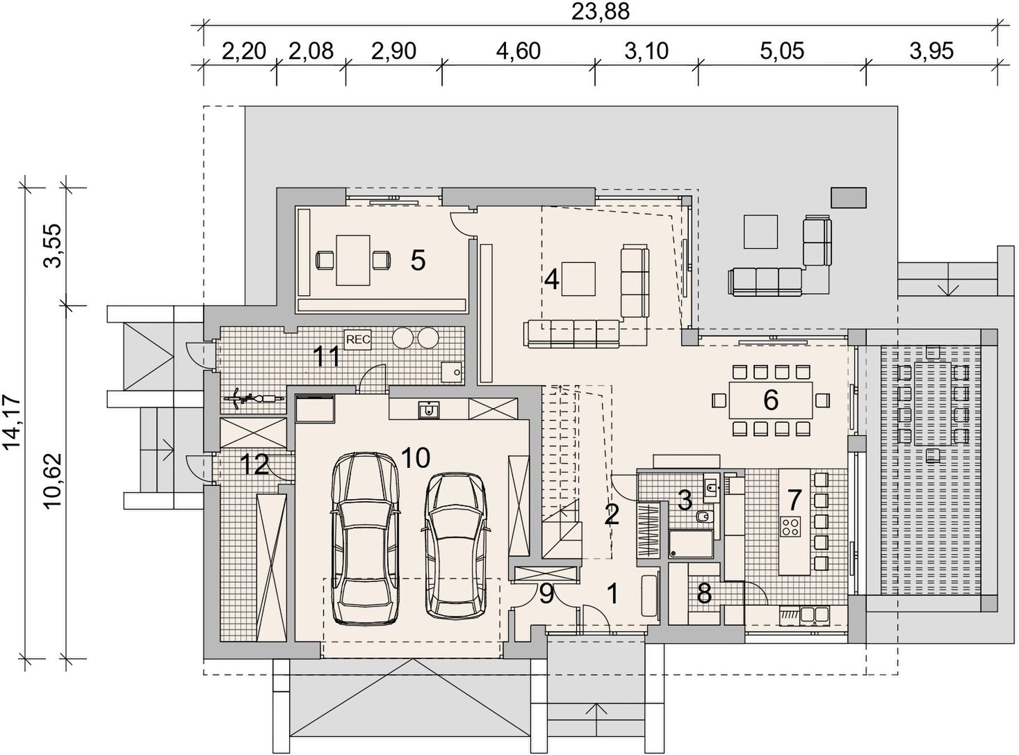 Projekt stanowi aktualną i pełną dokumentację zawierającą część architektoniczno - budowlaną, konstrukcyjną wykonawczą, instalacji wewnętrznych, elektrycznych i teletechnicznych, charakterystykę energetyczną oraz uprawnienia projektantów. Dokumentacja zabezpieczona jest specjalną plombą, której usunięcie uniemożliwi jej zwrot. Zapraszamy do zamówienia analizy posiadanej działki w celu upewnienia się, że wybrany projekt domu idealnie na nią pasuje.
