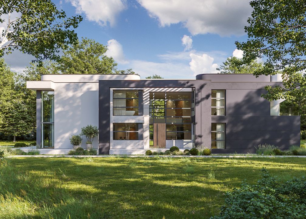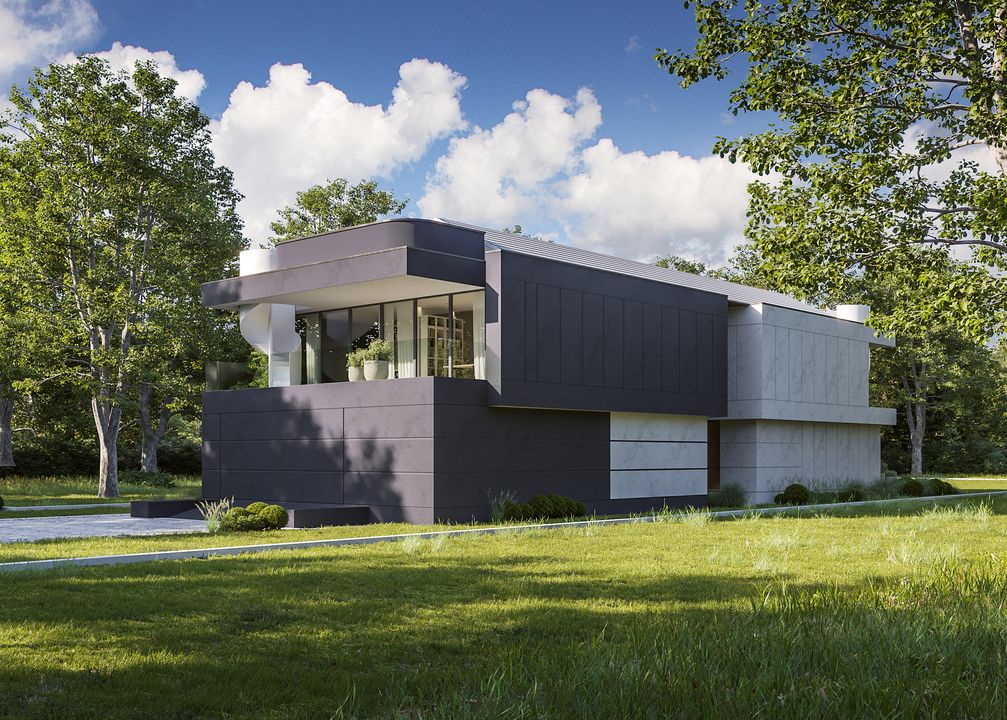 Graficzne opracowanie rzutów poglądowych widocznych na karcie projektu zostało wykonane przez Extradom.pl. Prezentowane przez Extradom.pl wizualizacje wykonane zostały przez autora projektu i należy poczytywać je jedynie za przykład i propozycję wykończenia, wizję architektoniczną autora projektu. Ostateczne wykończenie budynku może nastąpić na wiele sposobów. Szczegółowe rozwiązania zastosowane w oferowanej dokumentacji - w tym również ilość, lokalizacje i wygląd okien, drzwi, kominów - mogą w niewielkim stopniu różnić się od prezentowanej wizualizacji budynku.