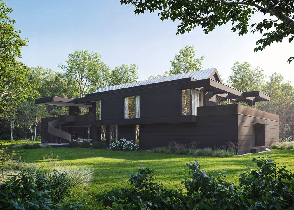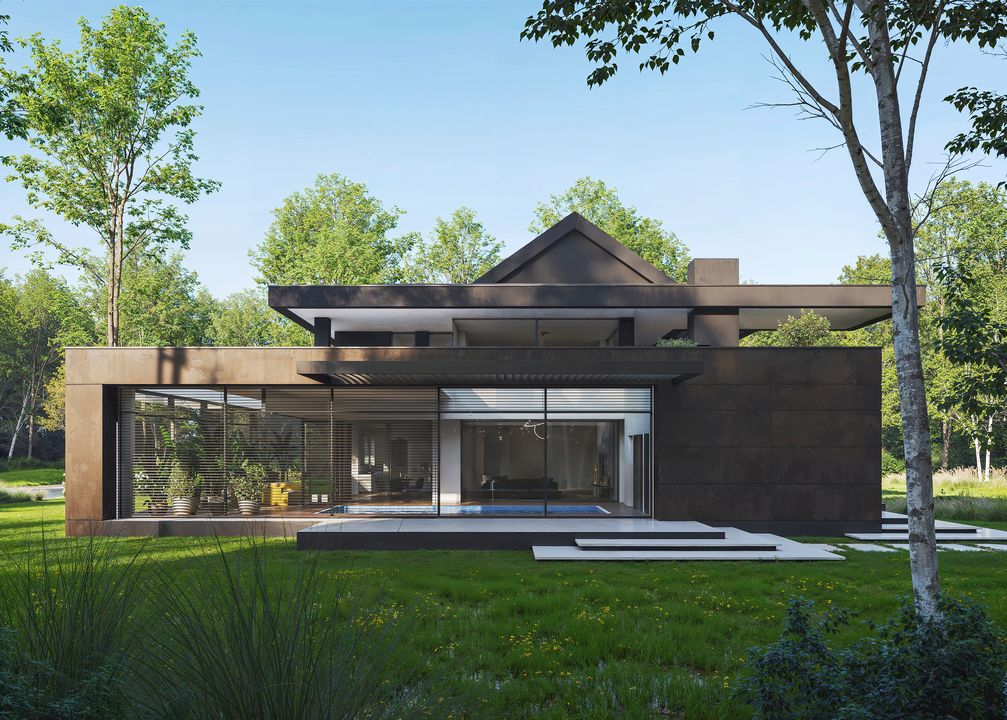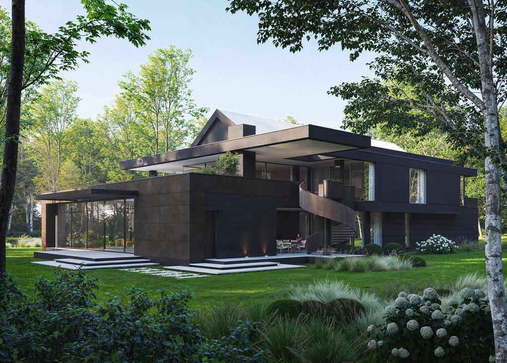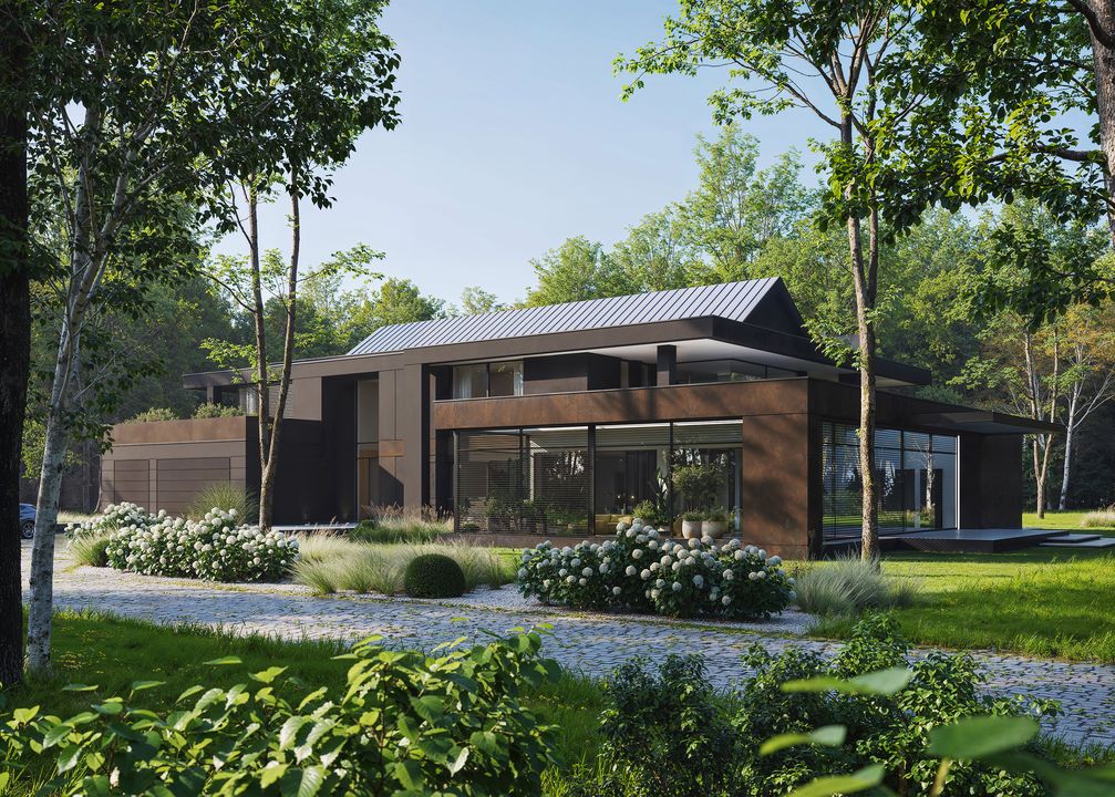 Płyta fundamentowa żelbetowa monolityczna. Ściany zewnętrzne: pustaki ceramiczne Porotherm Dryfix o grub. 30 cm firmy Wienerberger, styropian Termonium Plus Fasada o grub. 20 cm firmy Termo Organika. Ściany wewnętrzne: pustaki ceramiczne Porotherm Dryfix o grub. 25 cm i 11,5 cm firmy Wienerberger. Stropy żelbetowe monolityczne. Konstrukcja dachu: więźba dachowa, stropodach żelbetowy. Pokrycie dachu: blacha układana na rąbek stojący, kolor szary. Elewacje tynk zewnętrzny silikonowy firmy Bolix, kolor antracytowy, np. RAL9004; płyty elewacyjne, np. firmy Neolith, kolor Iron Corten, Pietra di Luna. Okna i drzwi: aluminiowe, kolor czarny, np. RAL9005. Sposób ogrzewania: podłogowe, powietrzna pompa ciepła. Wentylacja: mechaniczna z rekuperacją.