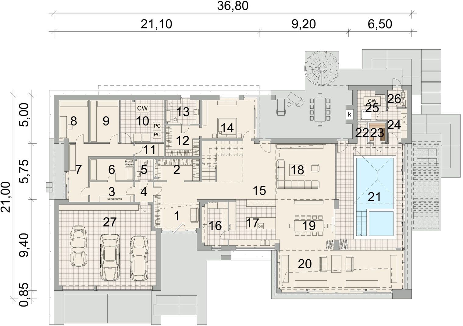Projekt stanowi aktualną i pełną dokumentację zawierającą część architektoniczno - budowlaną, konstrukcyjną wykonawczą, instalacji wewnętrznych, elektrycznych i teletechnicznych, charakterystykę energetyczną oraz uprawnienia projektantów. Dokumentacja zabezpieczona jest specjalną plombą, której usunięcie uniemożliwi jej zwrot. Zapraszamy do zamówienia analizy posiadanej działki w celu upewnienia się, że wybrany projekt domu idealnie na nią pasuje