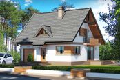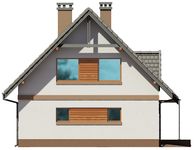 Graficzne opracowanie rzutów poglądowych widocznych na karcie projektu zostało wykonane przez Extradom.pl. Prezentowane przez Extradom.pl wizualizacje wykonane zostały przez autora projektu i należy poczytywać je jedynie za przykład i propozycję wykończenia, wizję architektoniczną autora projektu. Ostateczne wykończenie budynku może nastąpić na wiele sposobów. Szczegółowe rozwiązania zastosowane w oferowanej dokumentacji - w tym również ilość, lokalizacje i wygląd okien, drzwi, kominów - mogą w niewielkim stopniu różnić się od prezentowanej wizualizacji budynku.
