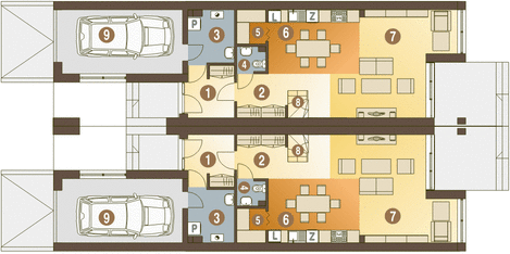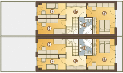 Budynek dwulokalowy posadowiony na wspólnym fundamencie. Jeśli planujesz budowę na osobnych działkach zamów pojedyncze segmenty: podstawa + lustro. Projekt jest w fazie koncepcji. Przy zakupie projektu należy zapłacić 35% zaliczki. Zaliczka jest bezzwrotna w przypadku zwrotu lub rezygnacji z zamówienia. Ze względu na dostosowanie projektu do aktualnych norm wymiary budynku mogą ulec zmianie.
