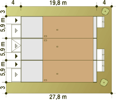 Graficzne opracowanie rzutów poglądowych widocznych na karcie projektu zostało wykonane przez Extradom.pl. Prezentowane przez Extradom.pl wizualizacje wykonane zostały przez autora projektu i należy poczytywać je jedynie za przykład i propozycję wykończenia, wizję architektoniczną autora projektu. Ostateczne wykończenie budynku może nastąpić na wiele sposobów. Szczegółowe rozwiązania zastosowane w oferowanej dokumentacji - w tym również ilość, lokalizacje i wygląd okien, drzwi, kominów - mogą w niewielkim stopniu różnić się od prezentowanej wizualizacji budynku.