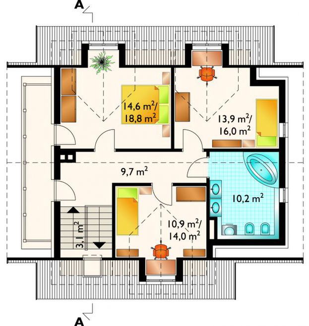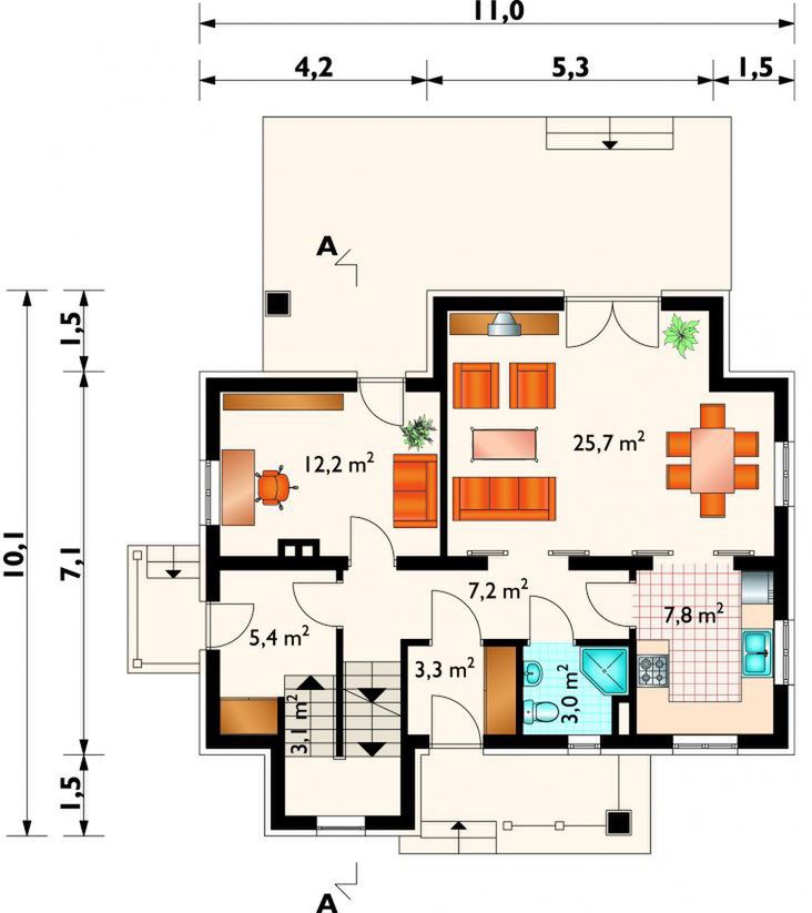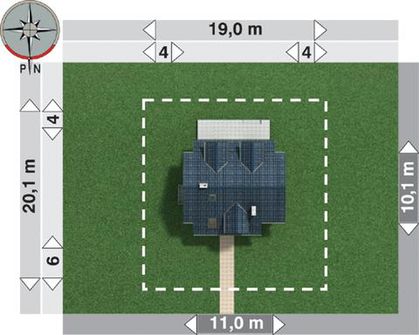Graficzne opracowanie rzutów poglądowych widocznych na karcie projektu zostało wykonane przez Extradom.pl. Prezentowane przez Extradom.pl wizualizacje wykonane zostały przez autora projektu i należy poczytywać je jedynie za przykład i propozycję wykończenia, wizję architektoniczną autora projektu. Ostateczne wykończenie budynku może nastąpić na wiele sposobów. Szczegółowe rozwiązania zastosowane w oferowanej dokumentacji - w tym również ilość, lokalizacje i wygląd okien, drzwi, kominów - mogą w niewielkim stopniu różnić się od prezentowanej wizualizacji budynku.
