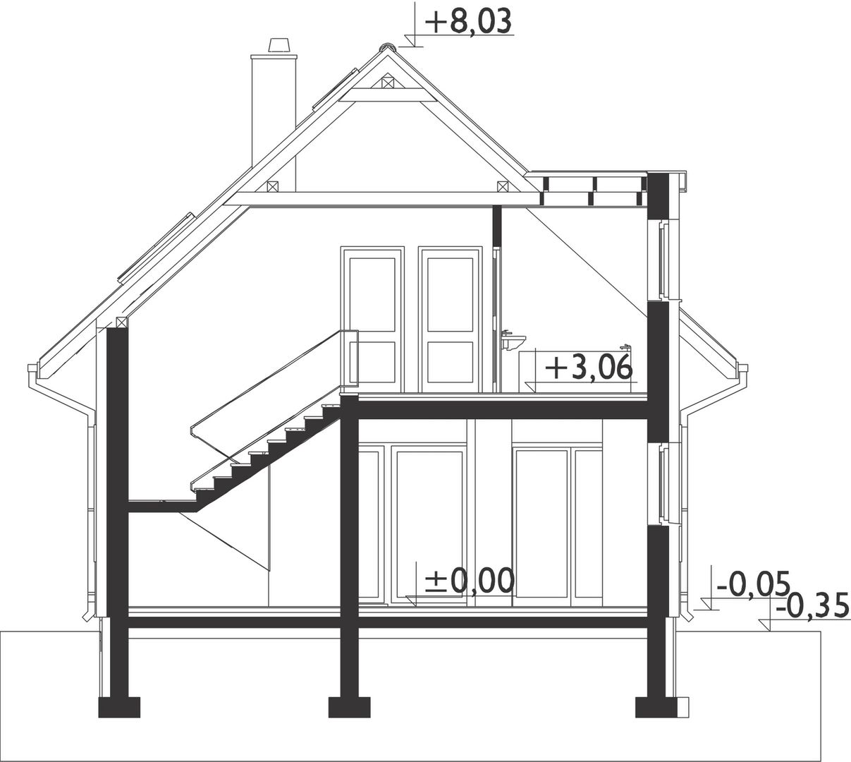 Wersja technologiczna: murowana - beton komórkowy. Strop: lekki strop panelowy Smart firmy Konbet. Typ schodów: płytowe żelbetowe. Konstrukcja dachu: drewniana. Typ ogrzewania: Kocioł na gaz. Dostępna wersja z pompą ciepła: Tak. Ściany zewnętrzne: 30 cm beton komórkowy. Ściany wewnętrzne: 24 cm beton komórkowy. Ściany wewnętrzne działowe: 11 cm beton komórkowy.