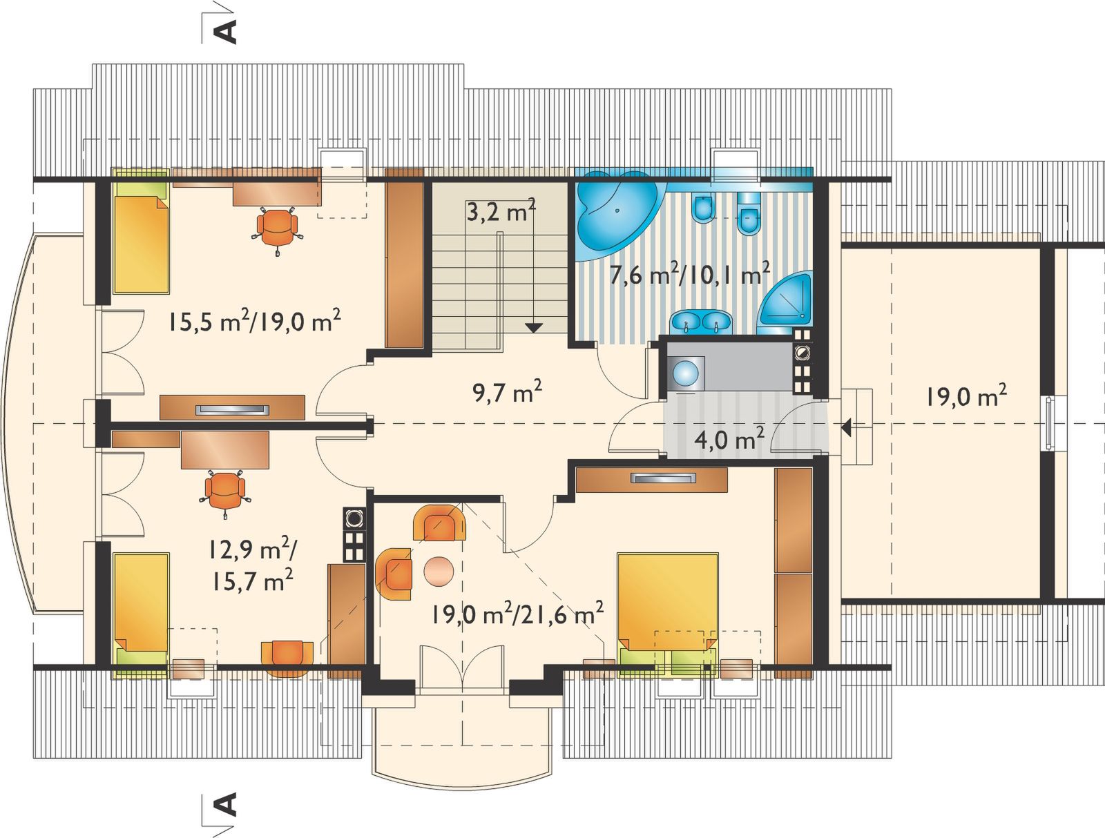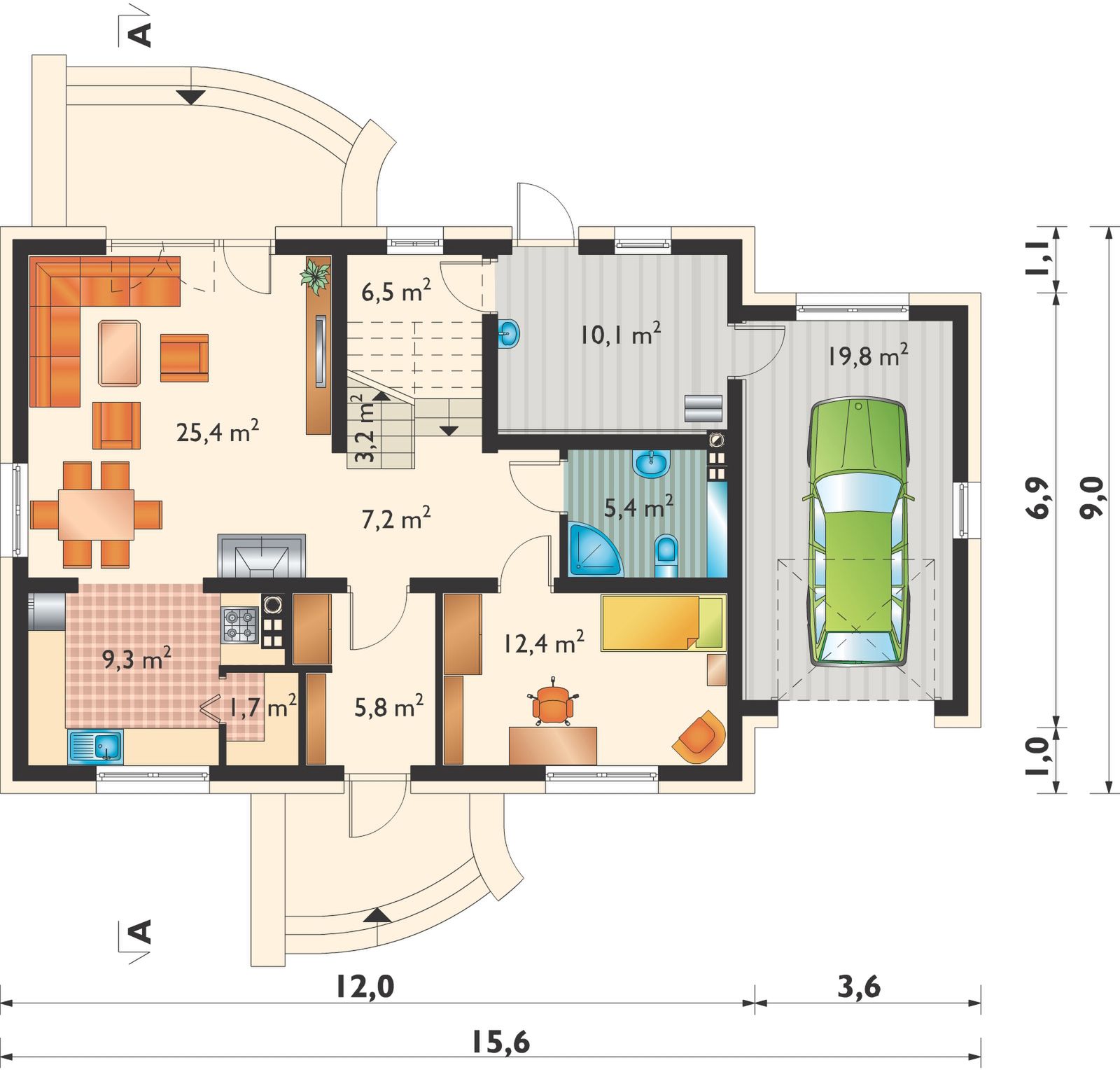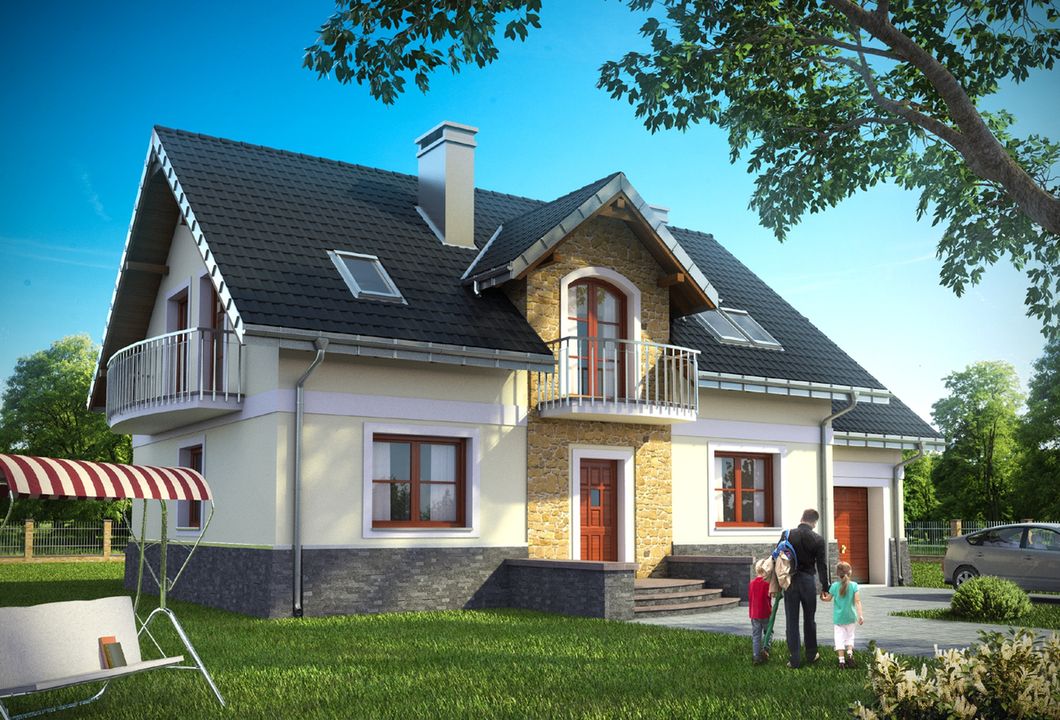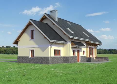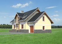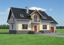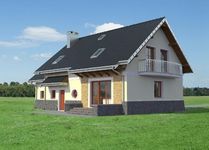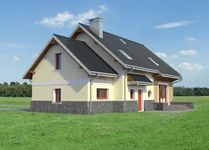 Graficzne opracowanie rzutów poglądowych widocznych na karcie projektu zostało wykonane przez Extradom.pl. Prezentowane przez Extradom.pl wizualizacje wykonane zostały przez autora projektu i należy poczytywać je jedynie za przykład i propozycję wykończenia, wizję architektoniczną autora projektu. Ostateczne wykończenie budynku może nastąpić na wiele sposobów. Szczegółowe rozwiązania zastosowane w oferowanej dokumentacji - w tym również ilość, lokalizacje i wygląd okien, drzwi, kominów - mogą w niewielkim stopniu różnić się od prezentowanej wizualizacji budynku.